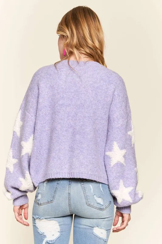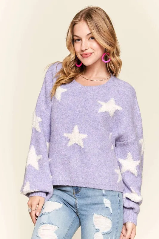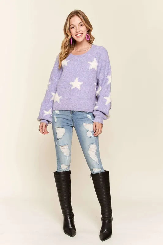 A star contrast round neck sweater is a stylish and eye-catching piece that features star designs as a contrast on the sweater. This type of sweater typically has a round neckline, providing a classic and flattering look. The star contrast adds a fun and playful element to the sweater, making it a great option for expressing your unique style. You can pair this sweater with jeans or leggings for a casual yet chic outfit, or dress it up with a skirt for a more dressed-up look. The star contrast round neck sweater is versatile and can be worn for various occasions, adding a touch of personality to your wardrobe.