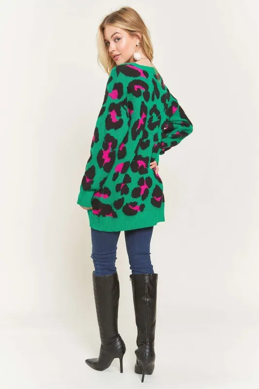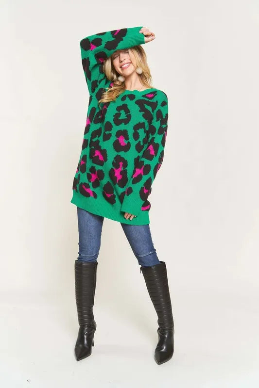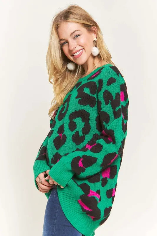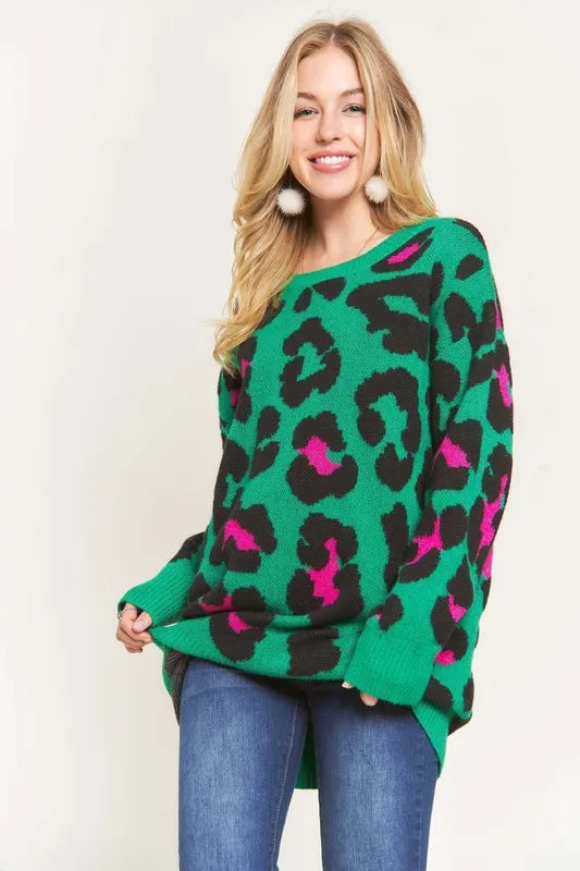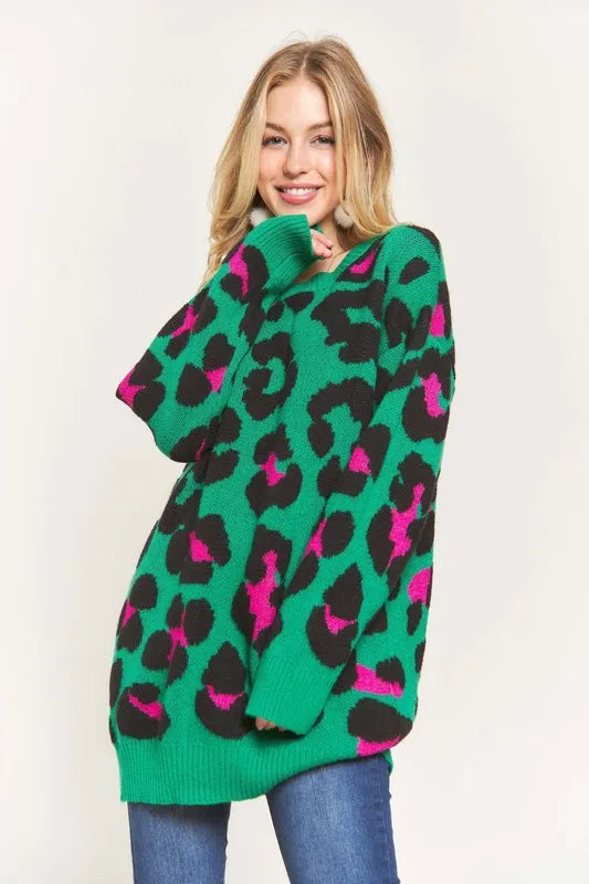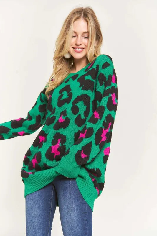 This sweater top is not only warm and soft but also features a trendy leopard print for a stylish and fashionable look. The combination of warmth, softness, and the leopard print design provides both comfort and on-trend style. Made with high-quality materials, this sweater top is perfect for staying cozy and chic during the colder seasons. Elevate your wardrobe with this versatile and eye-catching piece that effortlessly combines comfort and fashion-forward flair.