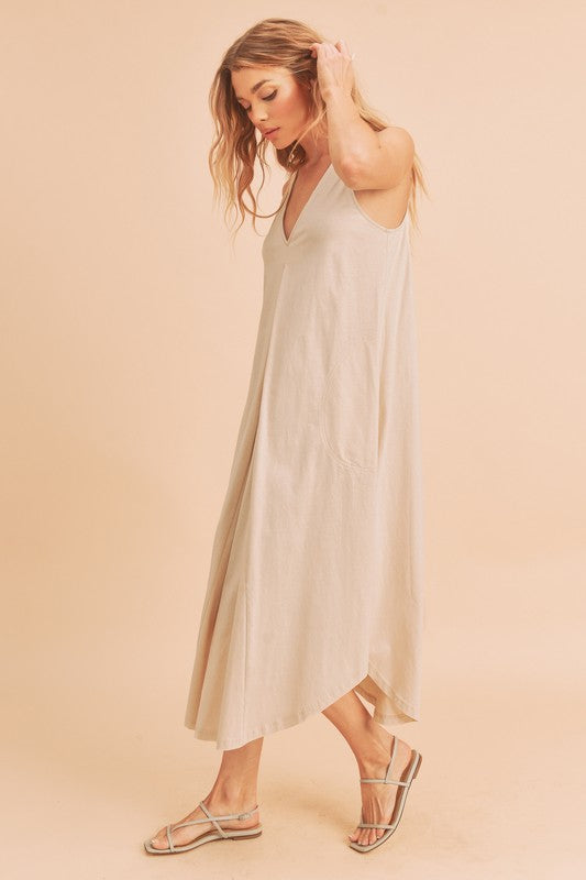 Aemi + Co Front Pleat Detail V-Neck Sleeveless Midi Dress