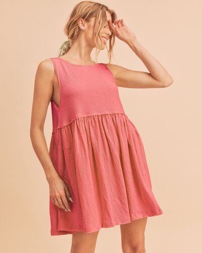 The Round Neck Mini Tank Dress is a versatile and essential piece for any wardrobe. This dress features a classic round neckline and a mini length, offering a simple and timeless silhouette. The tank style provides comfort and ease of movement, making it a great option for everyday wear or casual outings. Pair this dress with sneakers or sandals for a laid-back and effortless look, or dress it up with heels and accessories for a more polished ensemble.