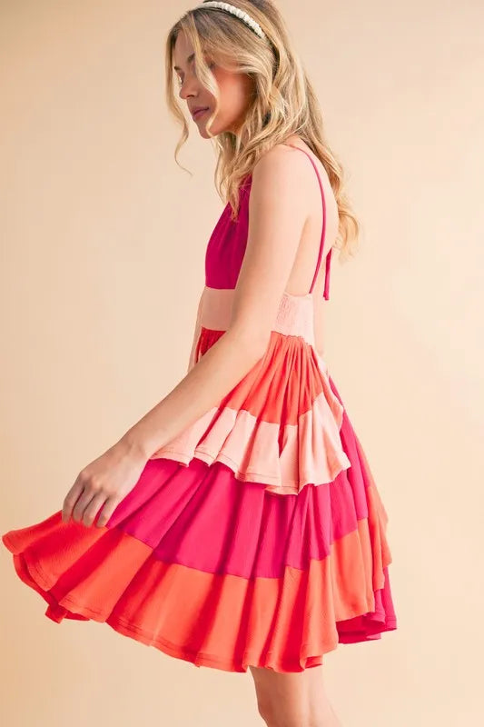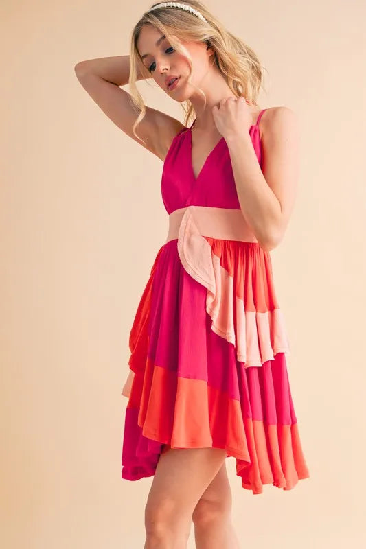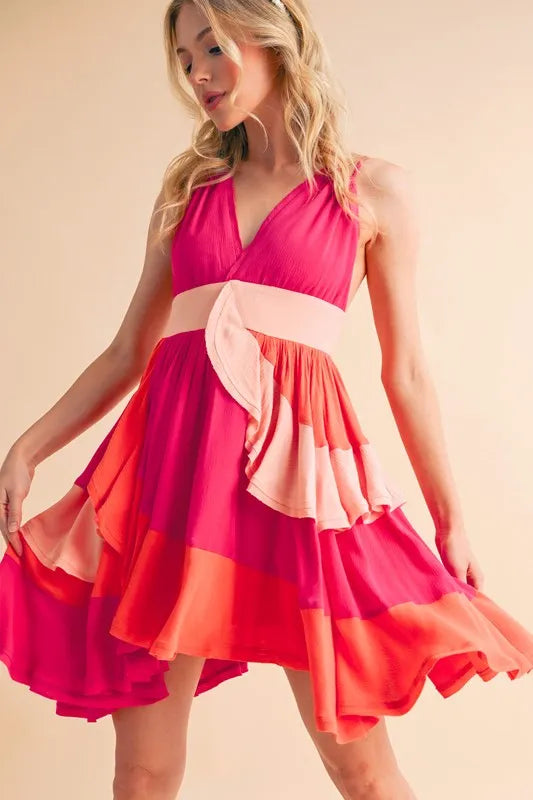 Aemi+Co Ruffled Color Block Sleeveless Mini Dress