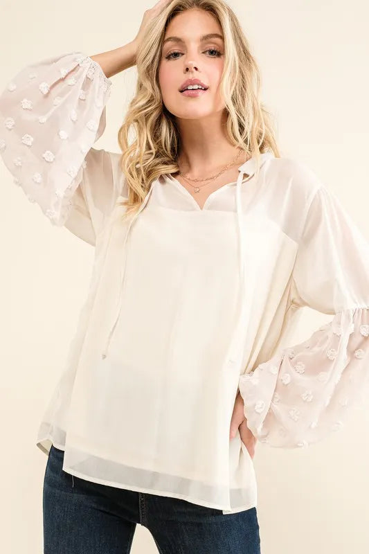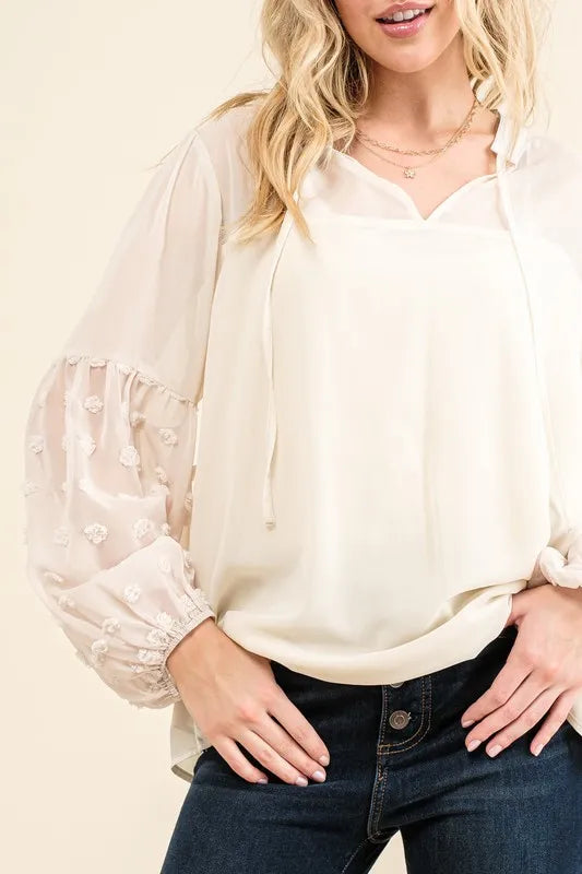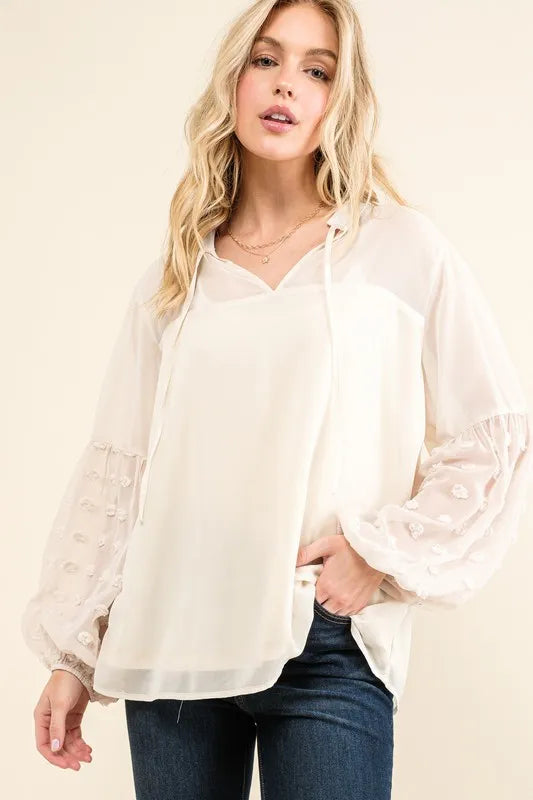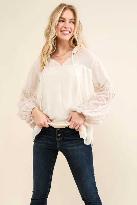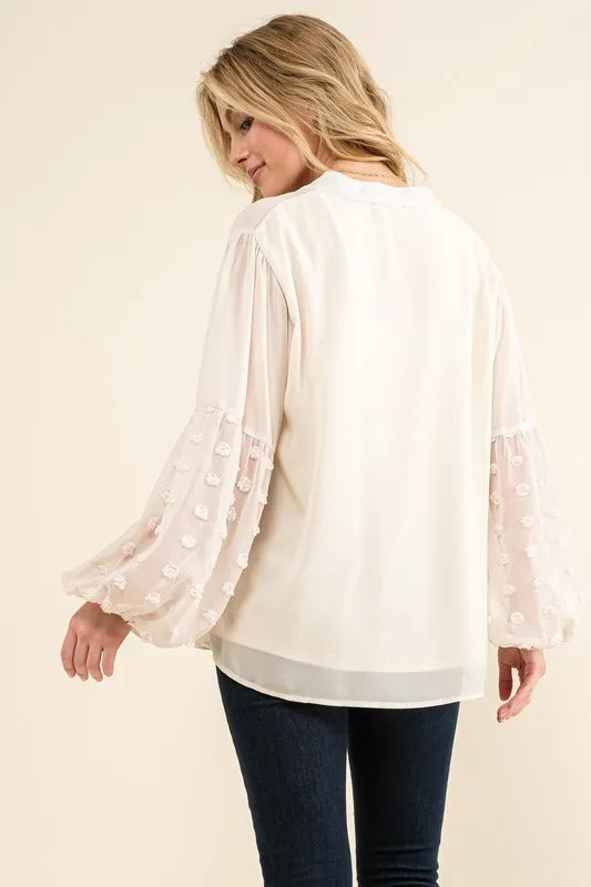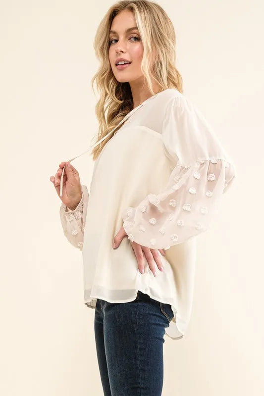 And The Why Polka Dot Balloon Sleeve Woven Blouse