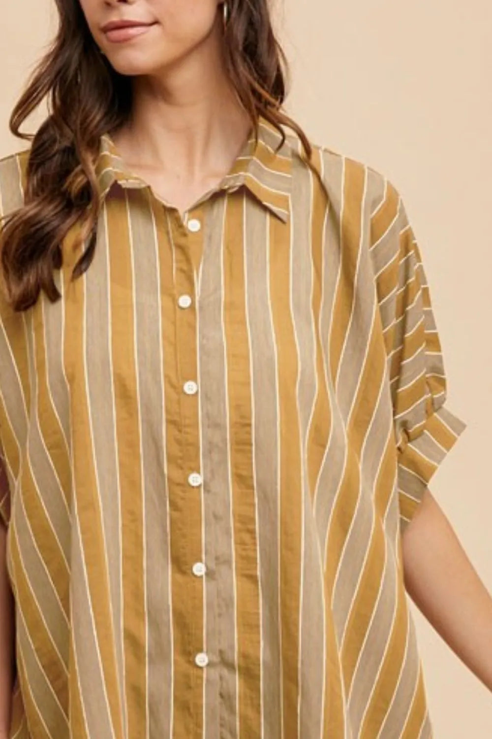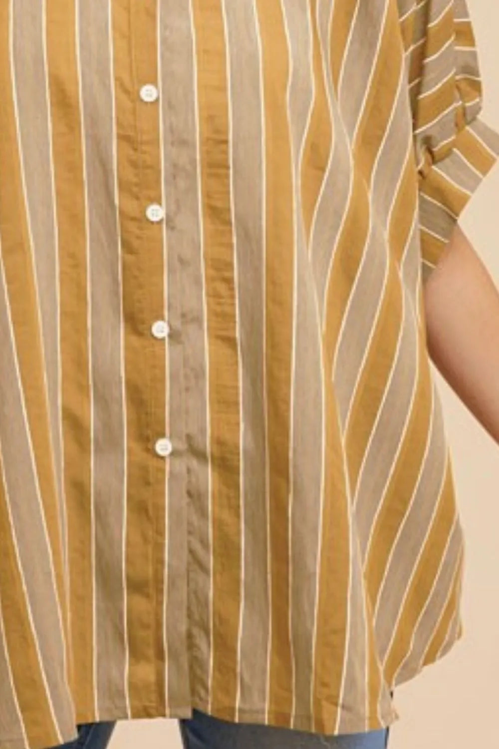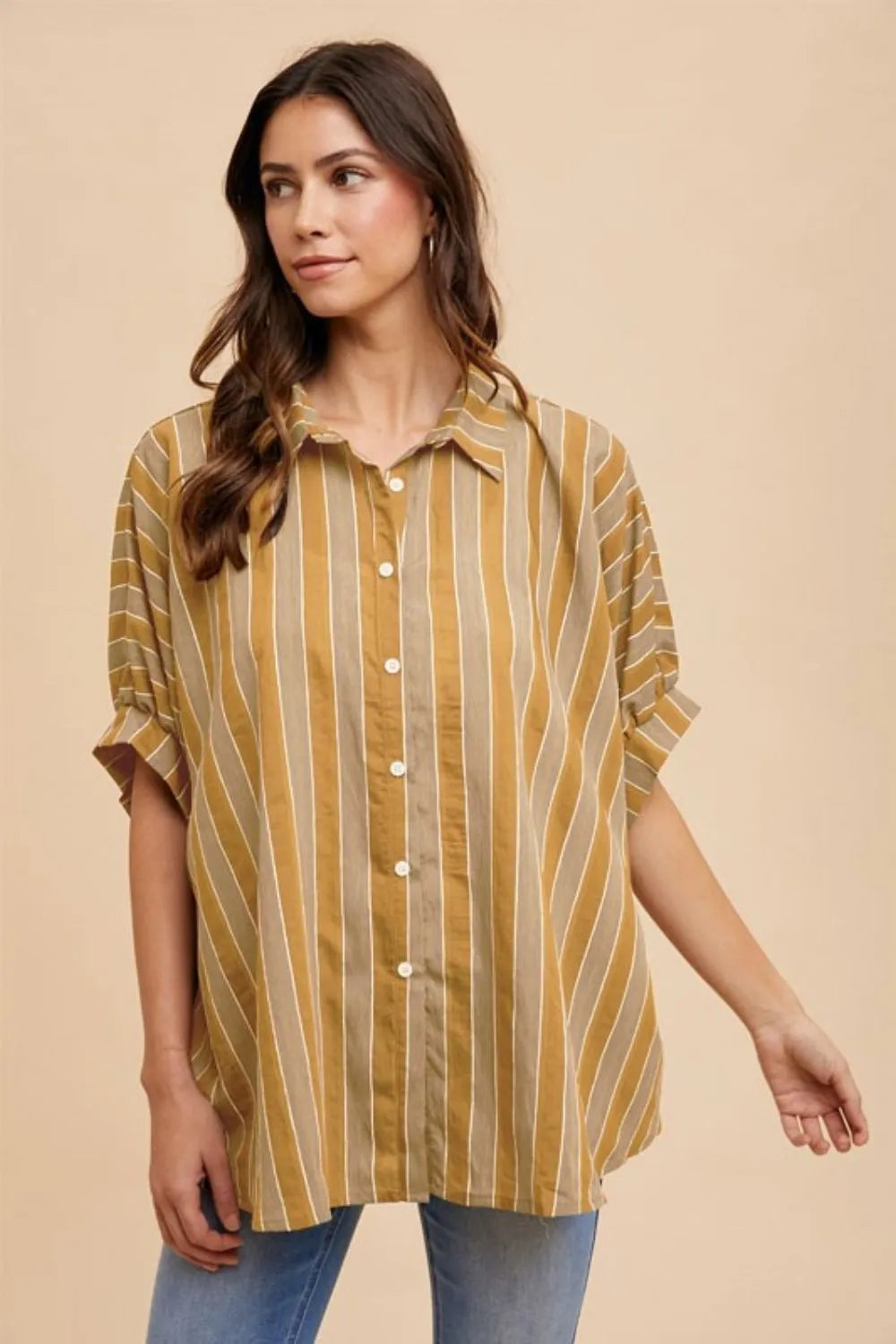 This Oversized Drop Shoulder Striped Woven Shirt features a relaxed fit with drop shoulder sleeves for a modern and comfortable look. The striped pattern adds a classic touch to the shirt. Perfect for creating a casual and effortless outfit, this oversized woven shirt is a versatile and stylish piece for your everyday wardrobe.