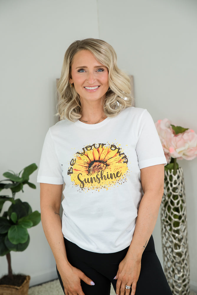 Be your own sunshine every day, and bring the sunshine with you wherever you go in this cute sunflower tee. Wear it with your comfiest Judy Blue shorts or leggings.