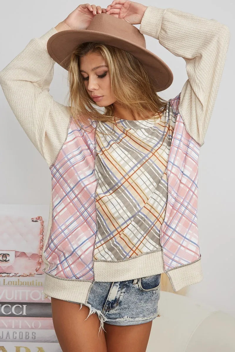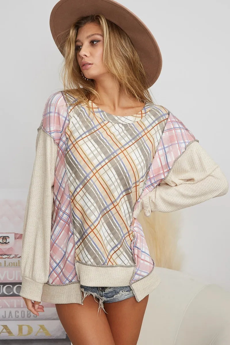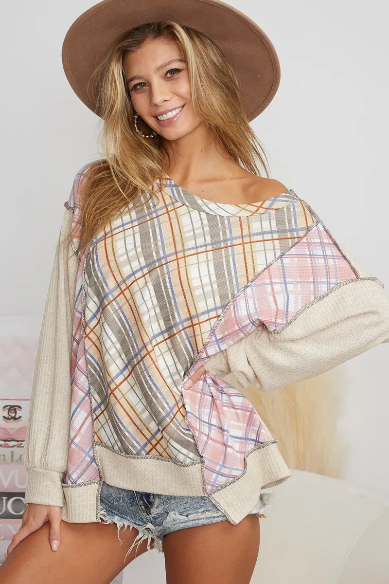 This top features a checked rib and color block design with an uneven hem for a fashion-forward and edgy look. The combination of checked rib and color block elements adds a dynamic and modern touch to the top. The uneven hemline creates a unique silhouette that adds interest and movement to the overall design. Made with high-quality materials, this top is both stylish and comfortable for all-day wear. Elevate your wardrobe with this trendy and eye-catching top that effortlessly blends contemporary style with a touch of flair.