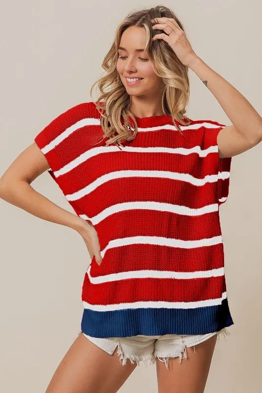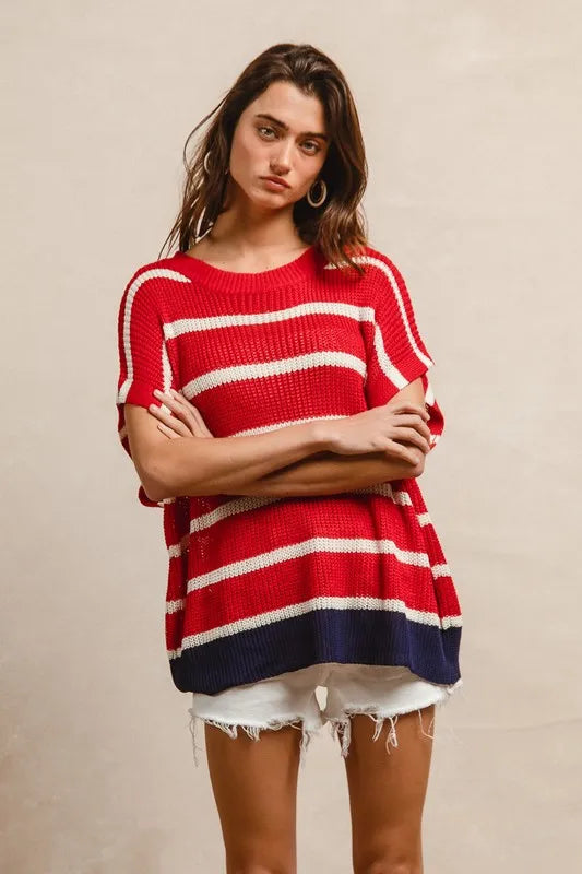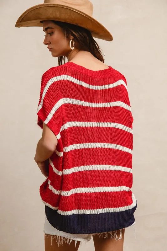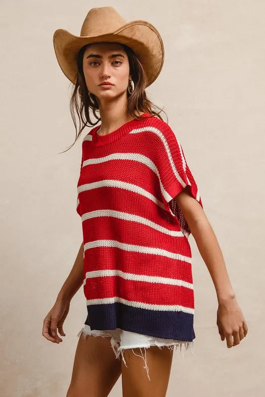 Celebrate the Fourth of July in style with this stripe drop shoulder sweater top. The patriotic design features red, white, and blue stripes, perfect for showing your American spirit. The relaxed drop shoulder adds a modern and cozy touch to the classic sweater silhouette. Pair it with denim shorts or white pants for a festive and laid-back look at your Independence Day celebrations.