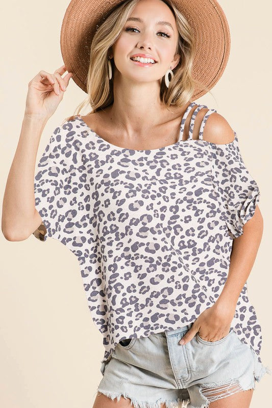 The Leopard Asymmetrical Neck Short Sleeve T-Shirt is a chic and modern piece that combines style and comfort. The asymmetrical neckline adds a unique and trendy twist to the classic t-shirt design. The leopard print pattern adds a touch of boldness and sophistication to the garment. With short sleeves, this t-shirt is perfect for warmer weather and can be easily paired with jeans or shorts for a stylish and casual outfit.