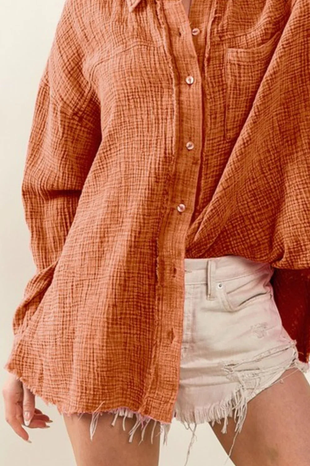 The Raw Edge Detailed Mineral Washed Loose Fit Shirt is a stylish and relaxed wardrobe essential. The mineral-washed finish gives it a trendy and vintage look, while the raw edge detailing adds a touch of edginess. The loose fit design offers comfort and a casual vibe, making it perfect for everyday wear. Pair this shirt with jeans or leggings for a laid-back and effortlessly cool outfit.