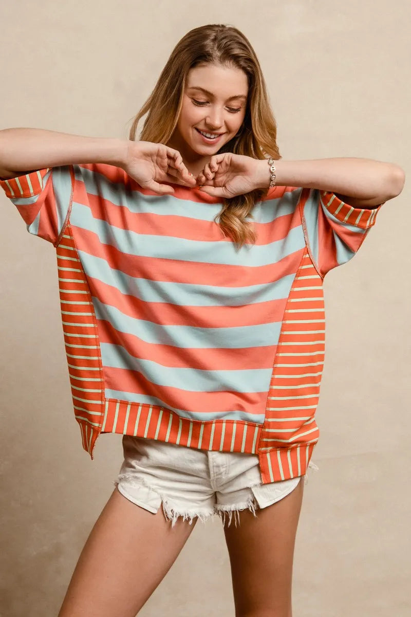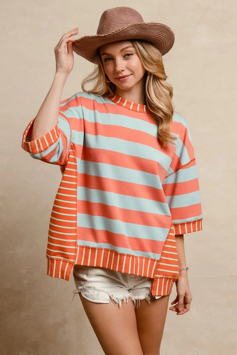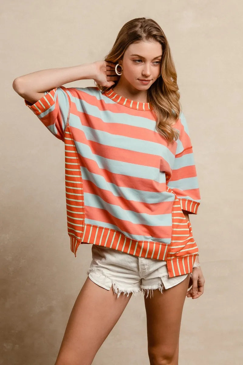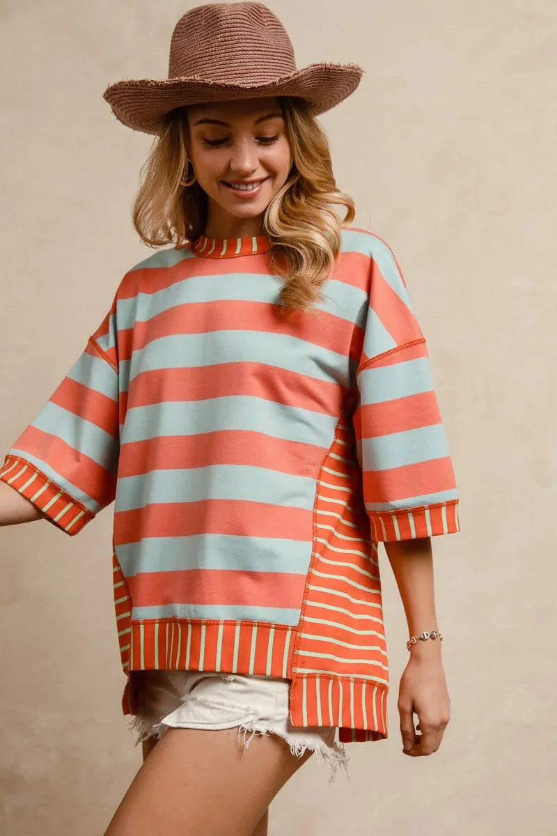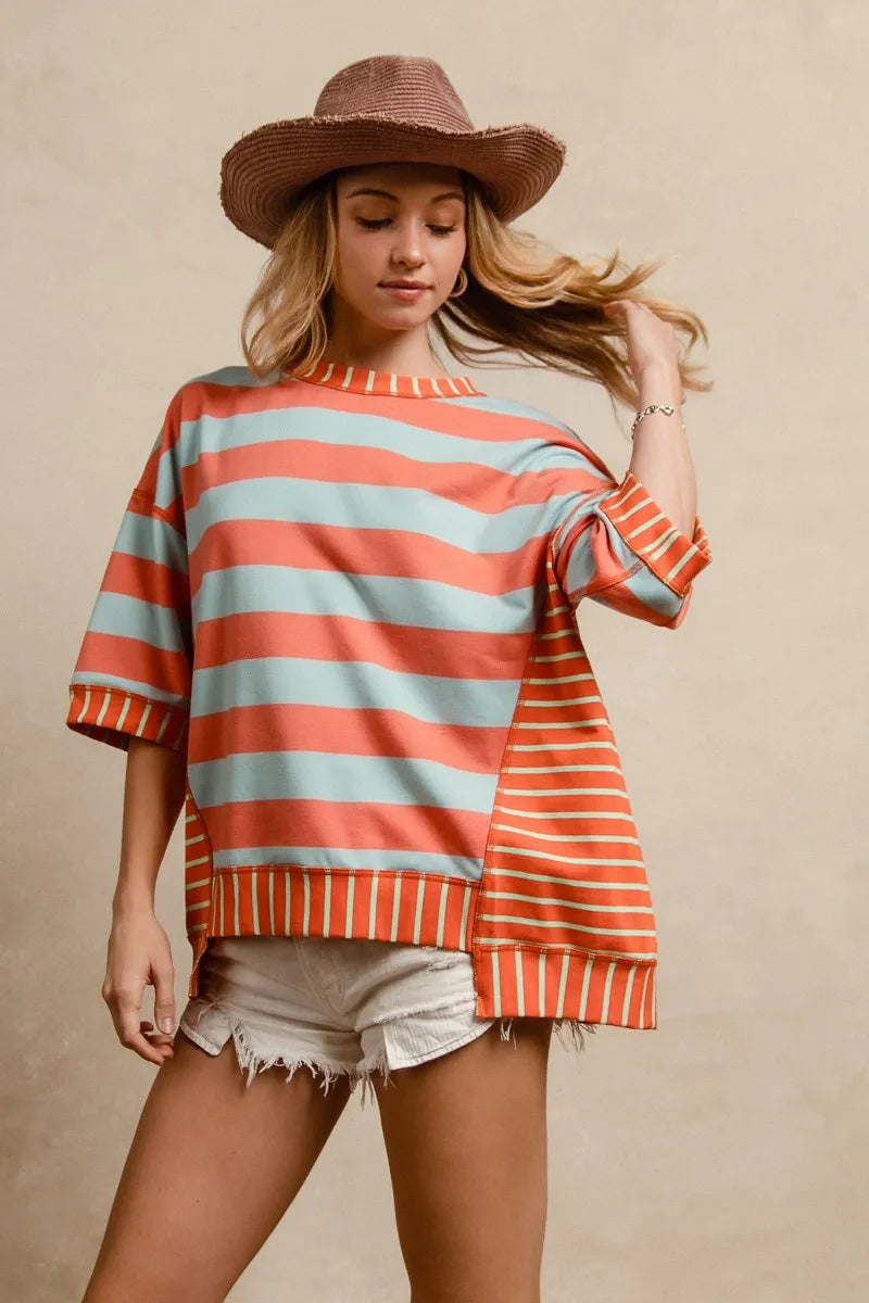 The Stripe Mix and Match Top with Contrast Stitch Detail is a versatile and stylish piece for your wardrobe. Featuring a mix of stripes for a dynamic look, and contrast stitching detail for added interest. This top is perfect for creating fashionable and unique outfits for any occasion.