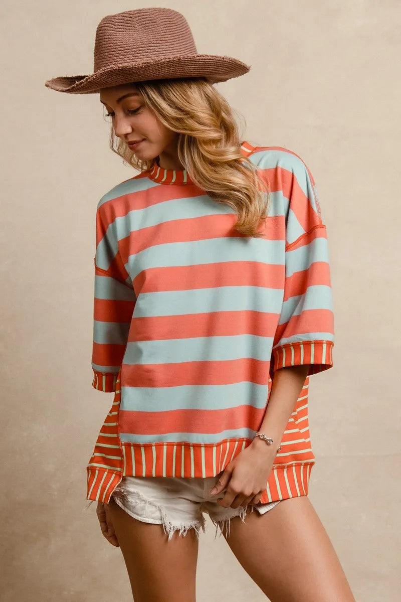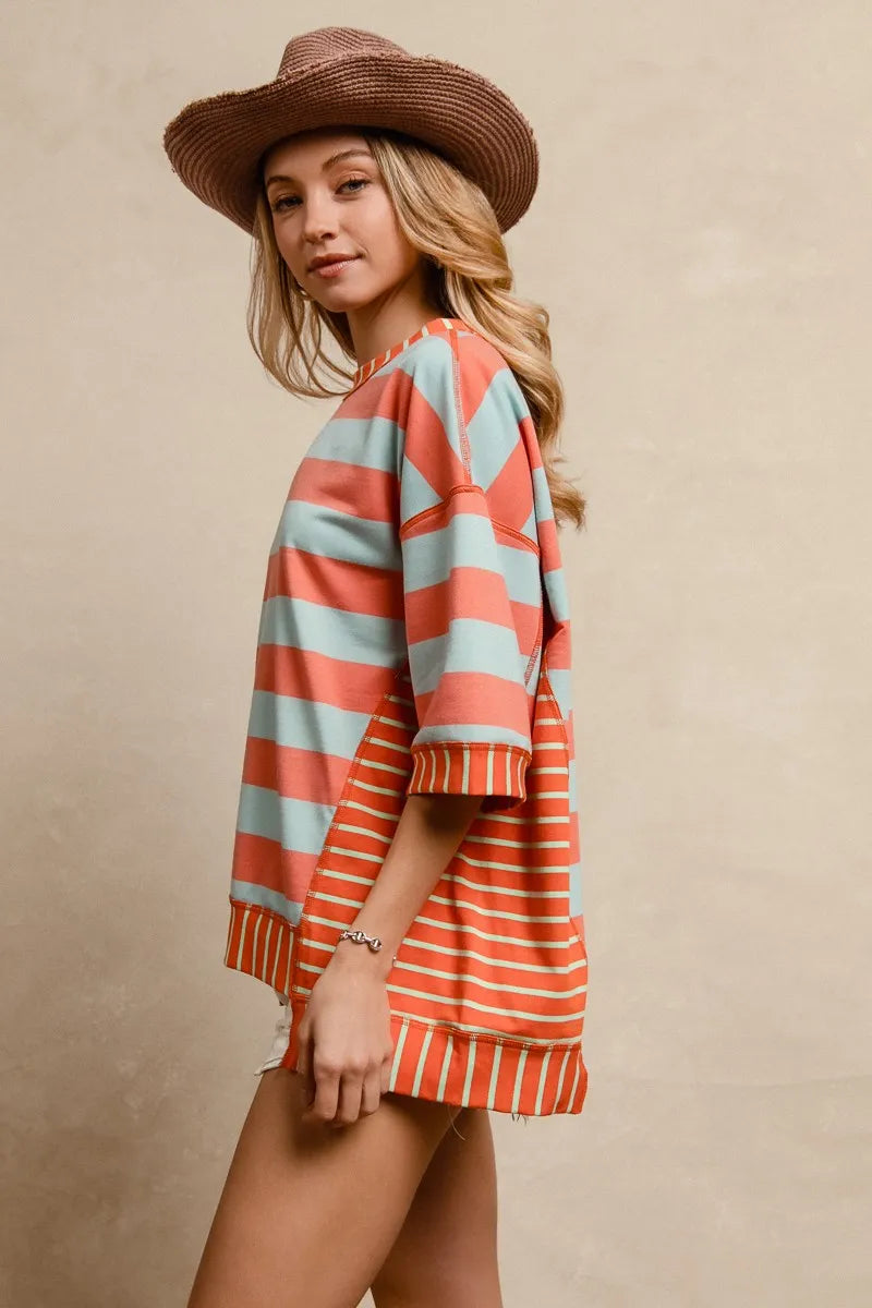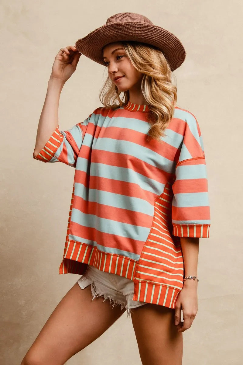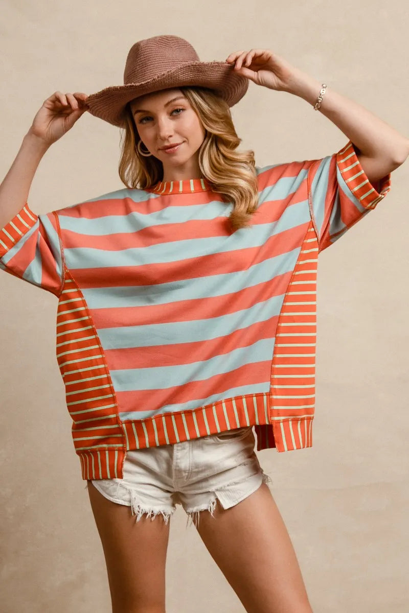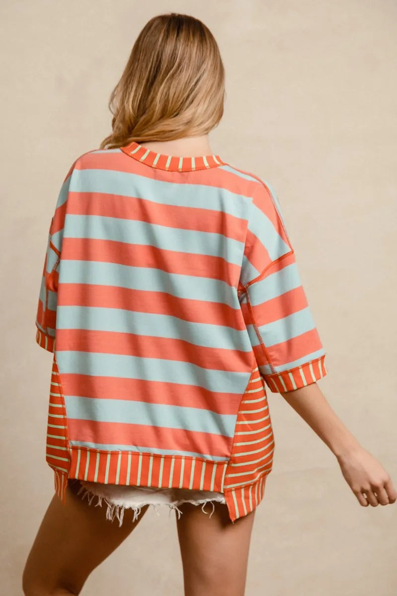 The Stripe Mix and Match Top with Contrast Stitch Detail is a versatile and stylish piece for your wardrobe. Featuring a mix of stripes for a dynamic look, and contrast stitching detail for added interest. This top is perfect for creating fashionable and unique outfits for any occasion.