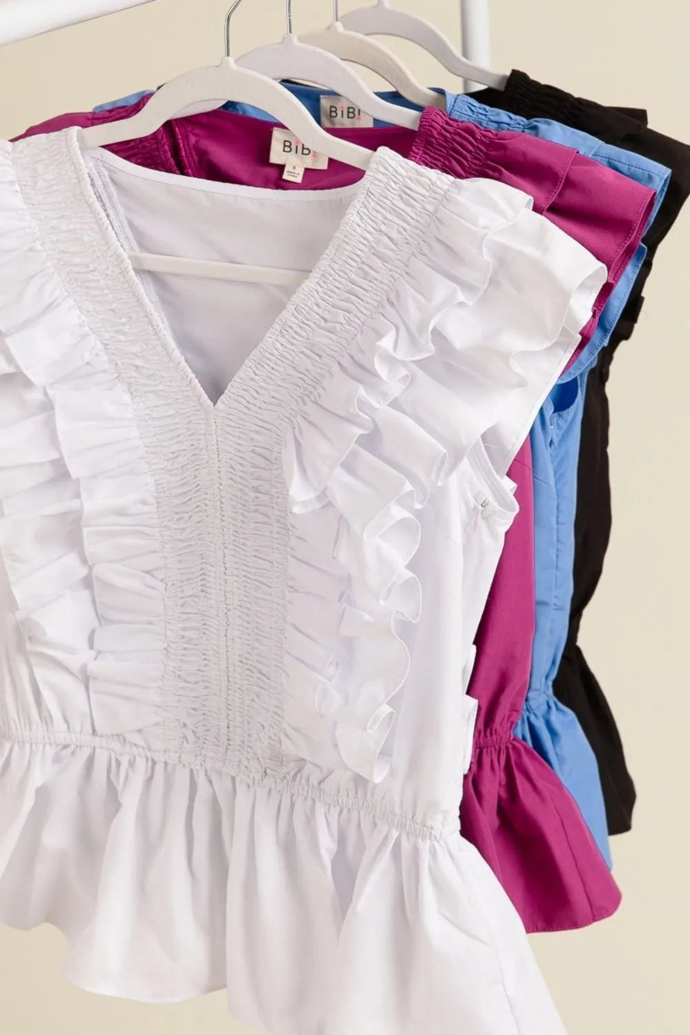 This woven ruffled top is a stylish and feminine addition to any wardrobe. The ruffled detail adds a touch of elegance and charm to the design. Made from high-quality woven fabric, this top is perfect for dressing up any outfit. Elevate your look with this chic and versatile woven ruffled top!