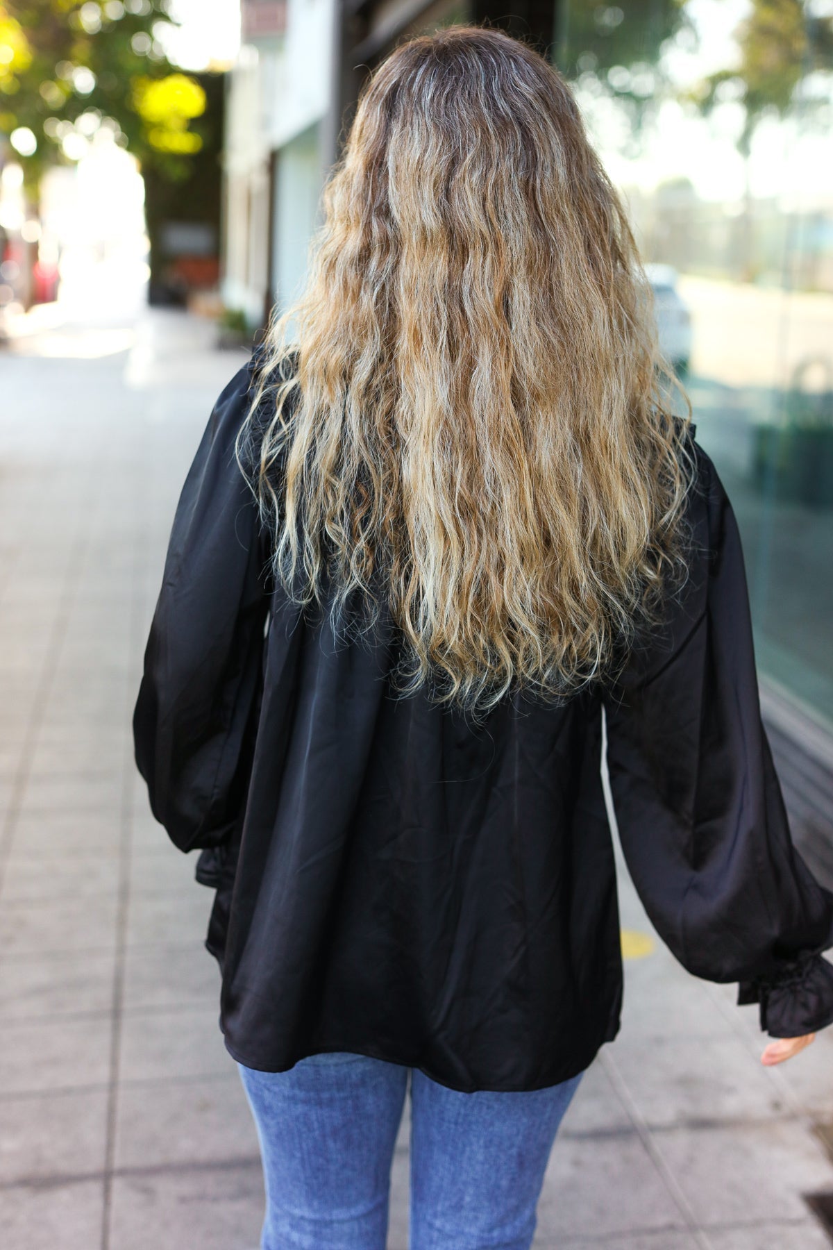 Refresh your holiday closet while adding a touch of femininity with this shirred yoke top with long elastic ruffle sleeves. A stunning frill mock neck and keyhole button back completes this versatile and stunning top.