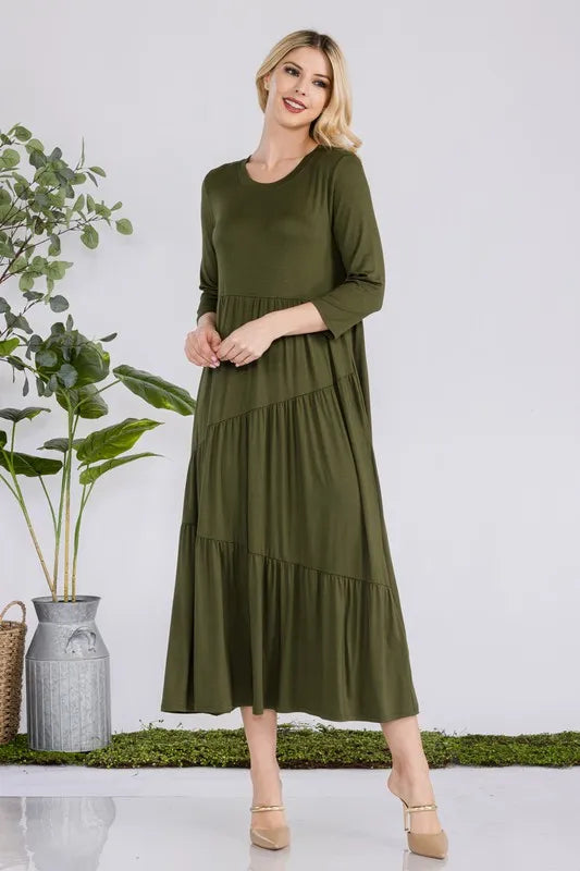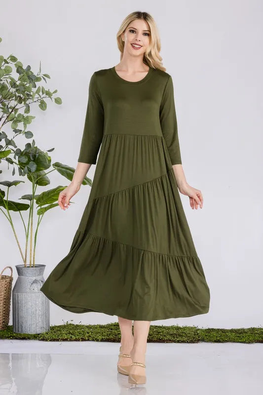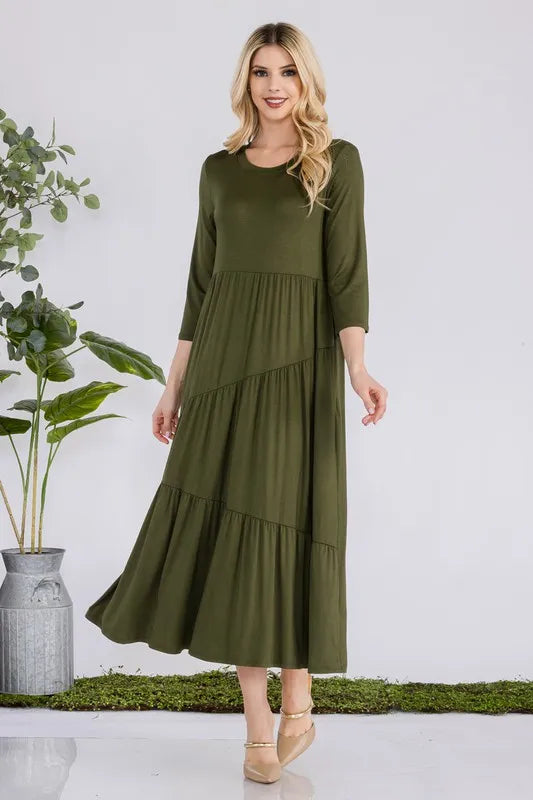 Celeste Full Size Asymmetric Tiered Midi-Dress Plus Size