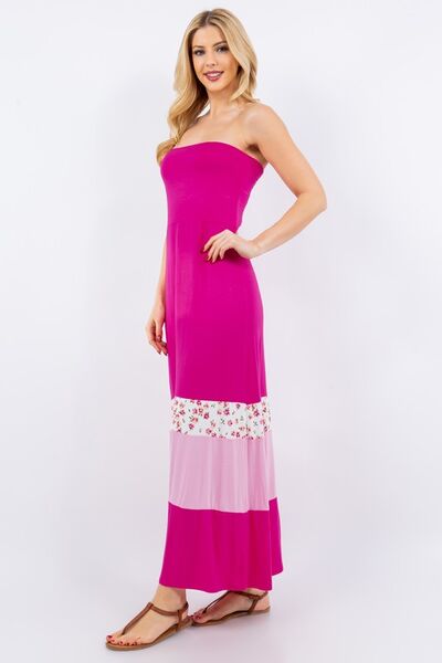 This Color Block Tube Maxi Dress combines bold color blocking for a striking and modern look. The tube top design adds a touch of elegance and simplicity to the dress. Perfect for a summer day out or a special occasion, this dress will make a statement with its eye-catching colors and maxi length.