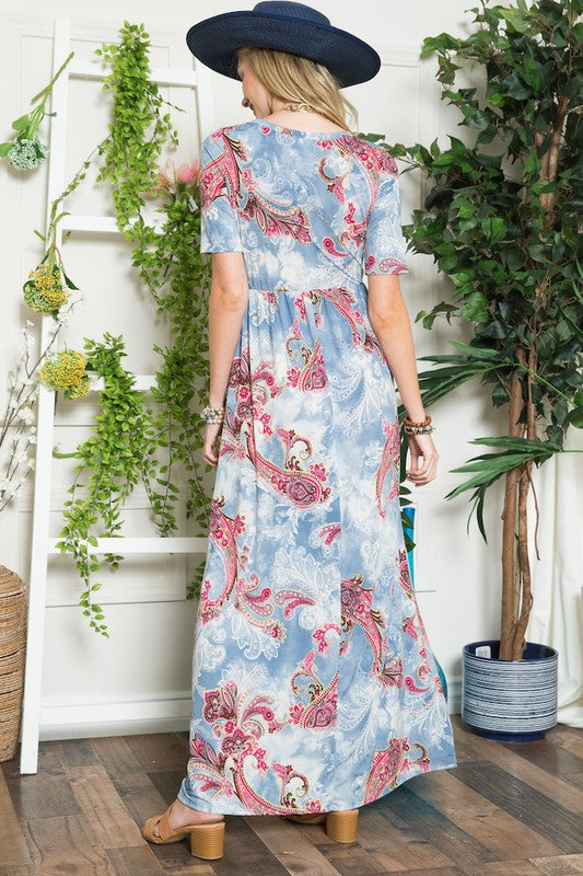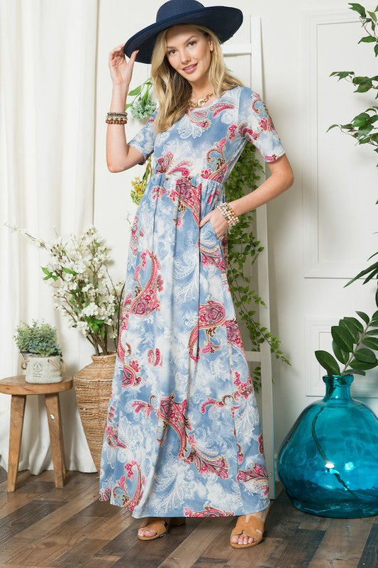 This gorgeous maxi dress is such an effortless piece that you can throw on and look put together in seconds! The unique paisley pattern brings more excitement to your outfit and the pockets add more versatility. This dress will be a perfect addition to your wardrobe!