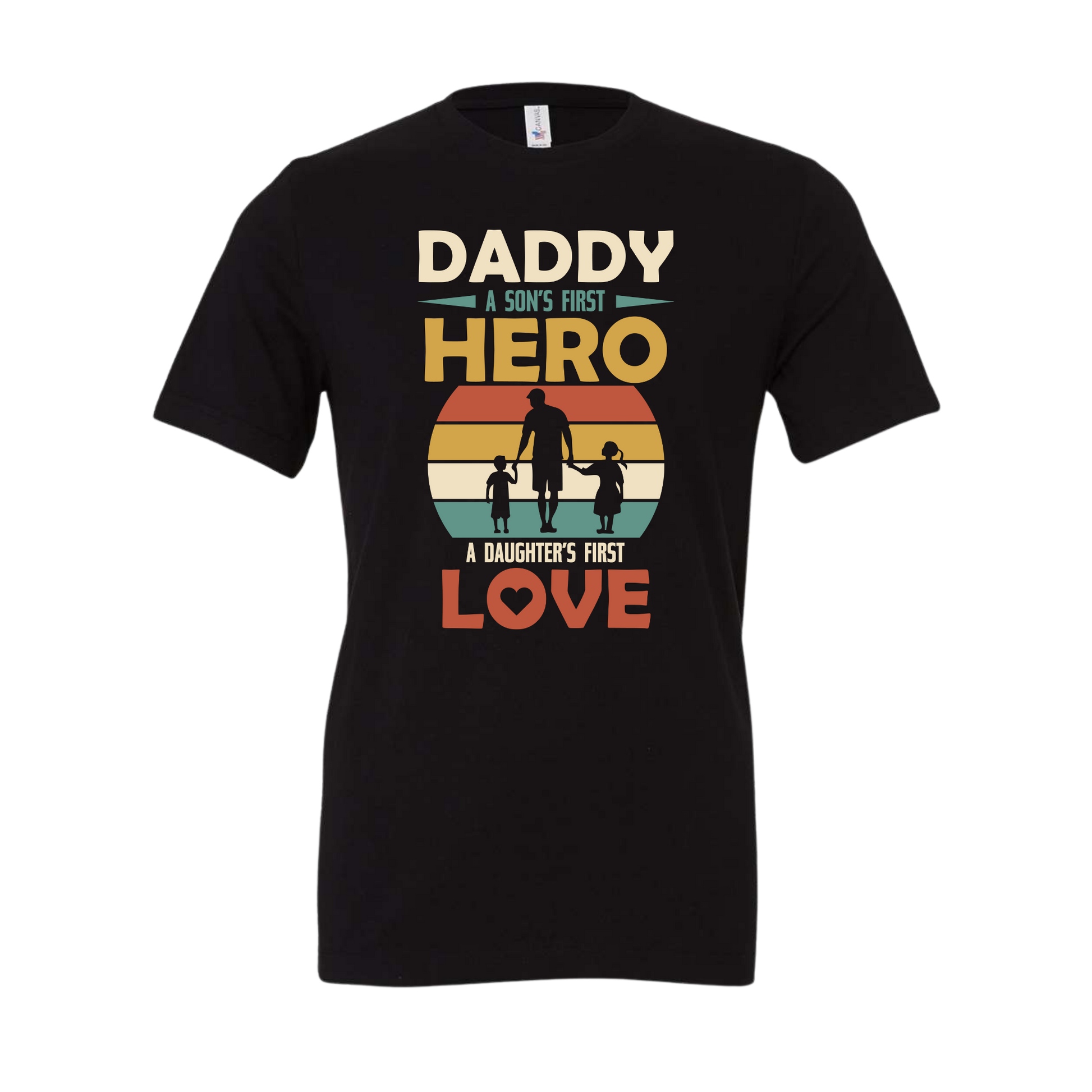 Daddy. How can you define a daddy? A son's first hero and a daughter's first love. Wear this black graphic tee on Father's Day and any day during the year.