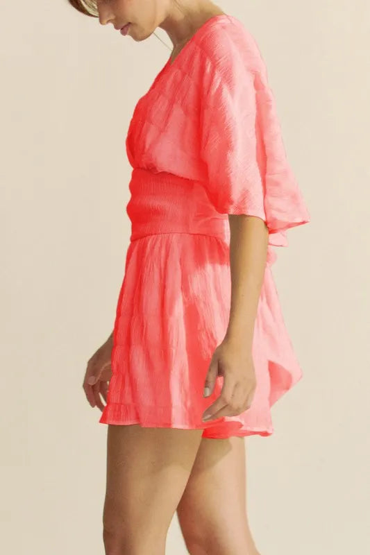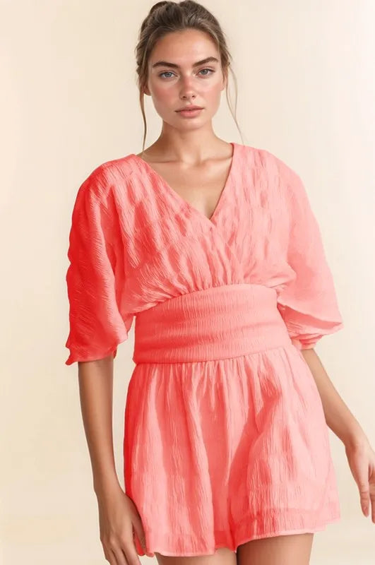 The Batwing Sleeve Waist Belt Romper is a chic and stylish piece that combines comfort with sophistication. The batwing sleeves add a touch of drama and elegance to the romper. The waist belt cinches in the waist for a flattering silhouette. This romper is versatile and can be dressed up or down depending on the occasion. Pair it with heels for a dressy look or sandals for a more casual vibe. It's a fashionable and easy-to-wear option for a variety of events.