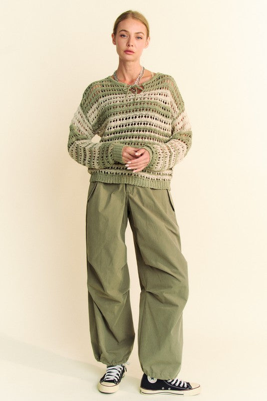 Davi & Dani Contrast Striped Crochet Drop Shoulder Knit Cover Up