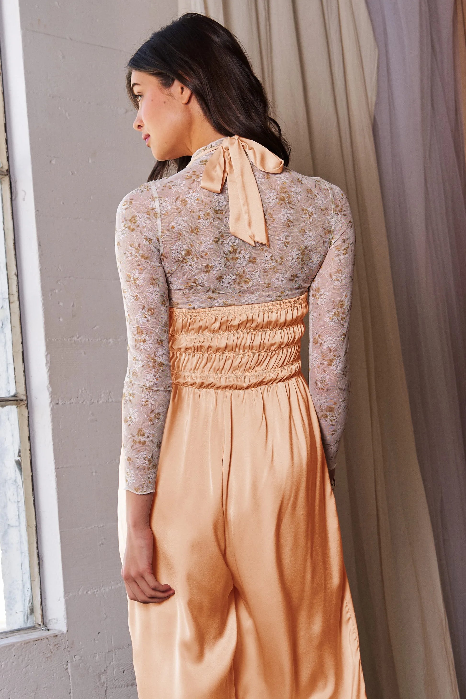 The Halterneck Tie Closure Smocked Bodice Jumpsuit is a chic and versatile piece that is perfect for both casual and dressed-up occasions. Featuring a halterneck design with tie closure and a smocked bodice, this jumpsuit offers a flattering and comfortable fit. The stylish and modern silhouette makes it a standout choice for any fashion-forward individual. Whether you're going out for brunch, attending a party, or just want to elevate your everyday look, this jumpsuit is a stylish and effortless option.
