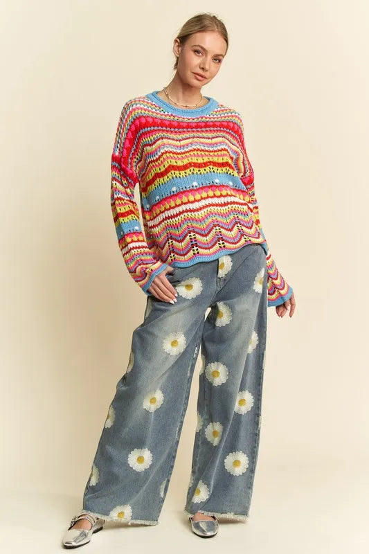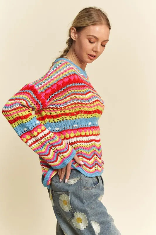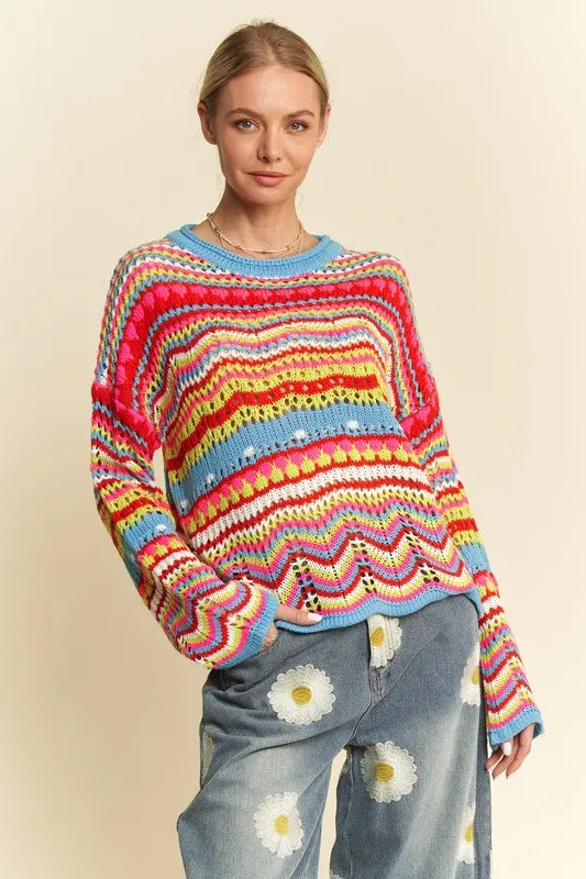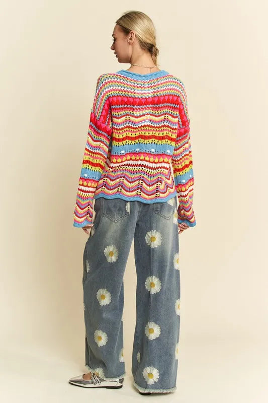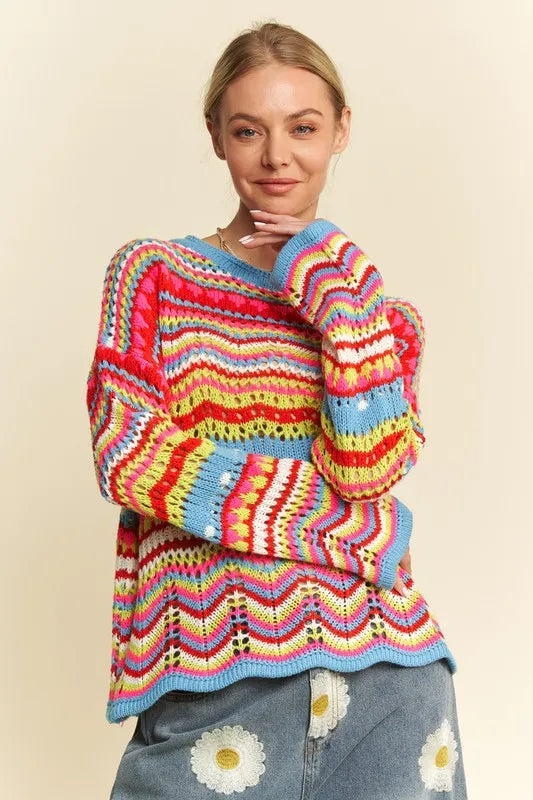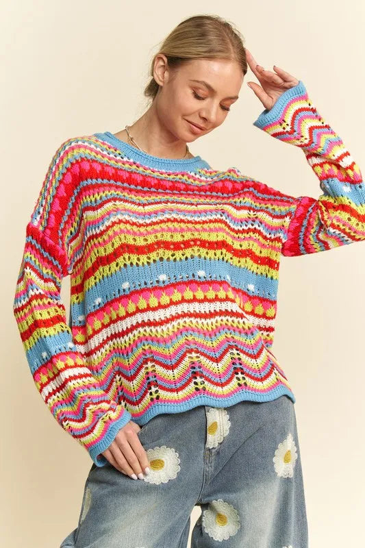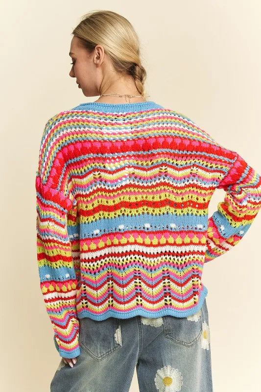 The Multi Texture Sweater Cover Up is a cozy and stylish layering piece perfect for chilly days. The combination of textures adds visual interest and dimension to the cover-up. It can be worn over a simple top or dress for added warmth and style. The versatility of this cover-up makes it a great option for transitioning between seasons. Pair it with jeans and boots for a casual ensemble, or over a dress for a more polished look. Stay comfortable and chic with this multi-textured sweater cover-up.