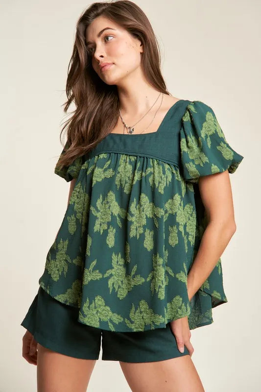 This nature printed square neck puff sleeve blouse is a fresh and unique addition to your collection. The square neckline and puff sleeves add a touch of charm and elegance to your outfit. With its nature-inspired print, it's perfect for a casual or dressed-up look.