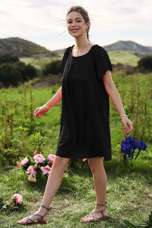 Davi & Dani Textured Ruffle Boat Neck Shift Dress