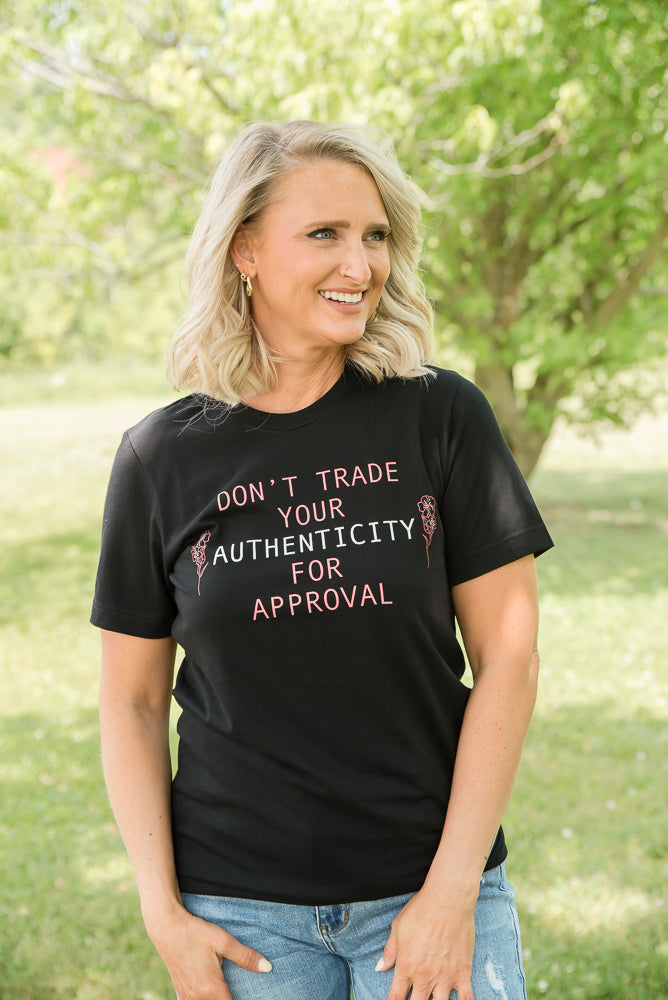 You are amazing just as you are! Don't trade that for anything. Style this graphic tee with your favorite Judy Blues or leggings.