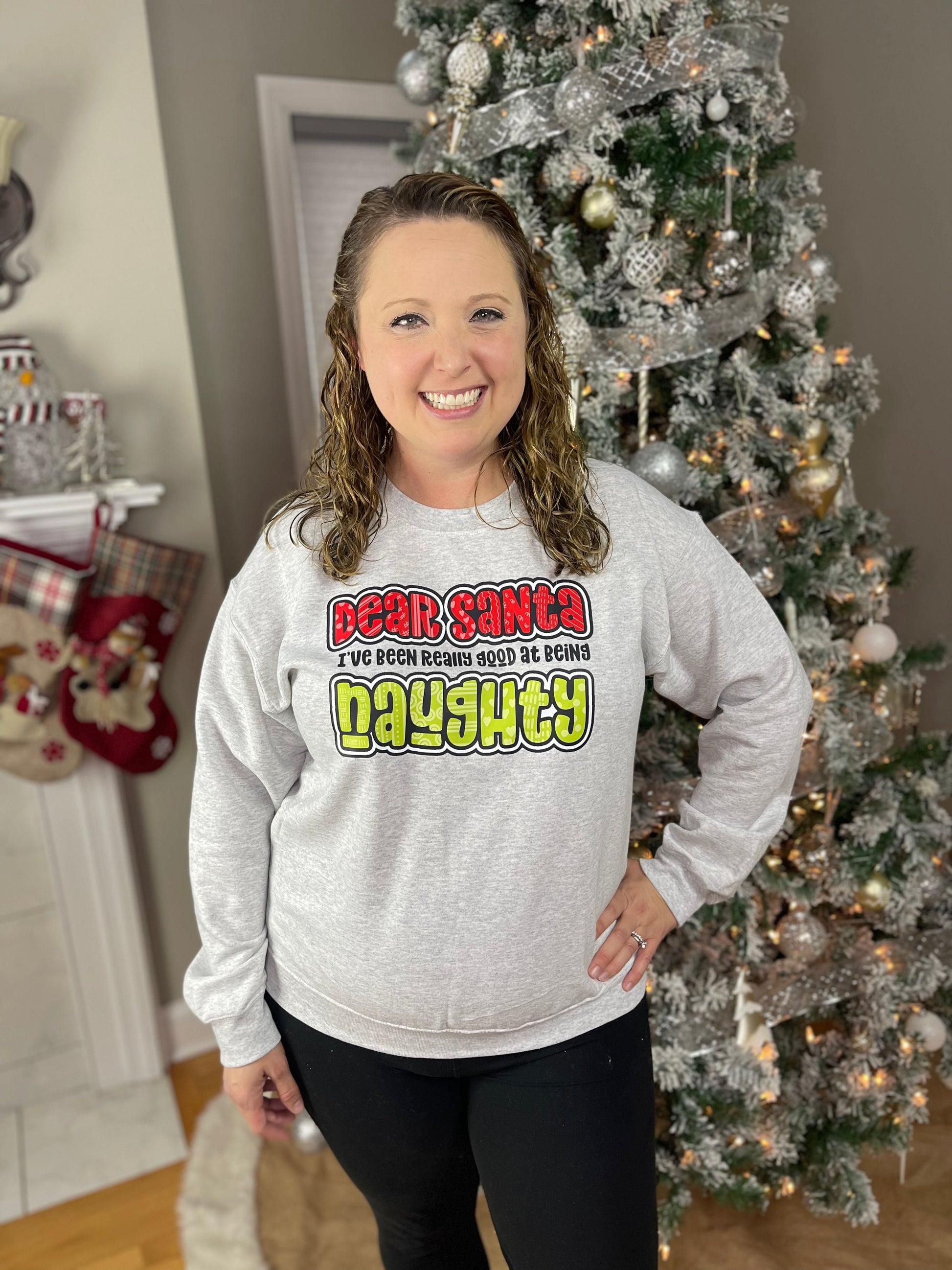 Maybe Santa can find the silver lining? Wear this gray sweatshirt with lounge pants and slippers during the holiday season.