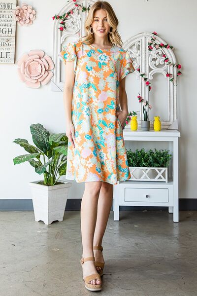 Heimish Full Size Ruffled Short Sleeve Floral Mini Dress Plus Size