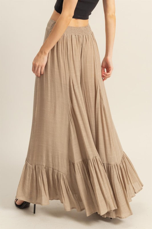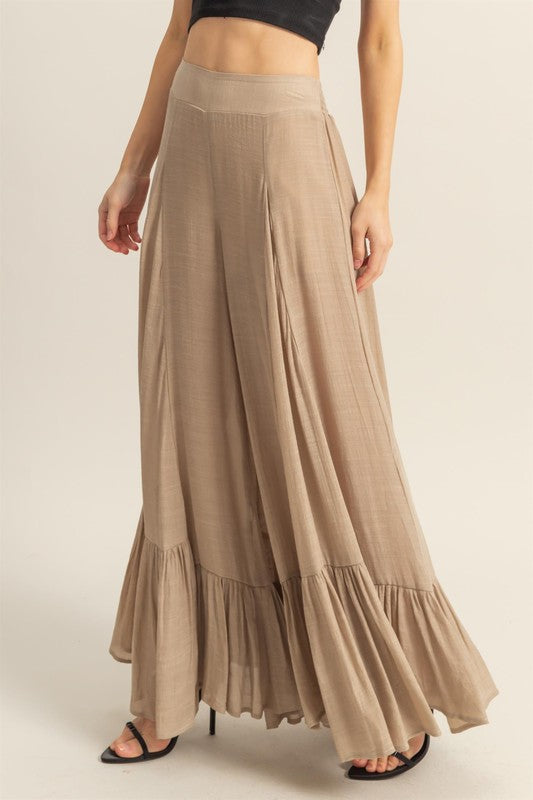 These High-Waist Ruffle Flared Wide Leg Pants are a stunning addition to your wardrobe. Featuring a flattering high waist and cascading ruffle detail, these pants offer a unique and stylish look. The wide leg design adds a touch of elegance and sophistication to any outfit. Perfect for both casual and formal occasions, these pants are sure to make a statement wherever you go.