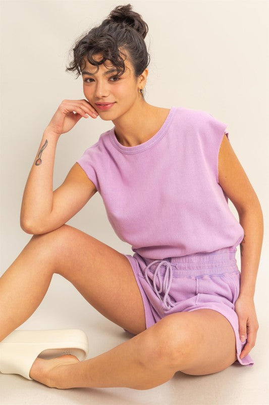 The Round Neck Cap Sleeve Drawstring Waist Romper is a chic and comfortable one-piece outfit that is perfect for a casual day out or a laid-back occasion. Featuring a round neck and cap sleeves, this romper offers a classic and flattering silhouette. The drawstring waist allows you to adjust the fit to your liking, adding a touch of functionality to the ensemble.