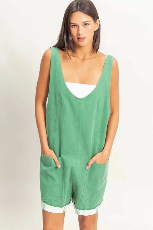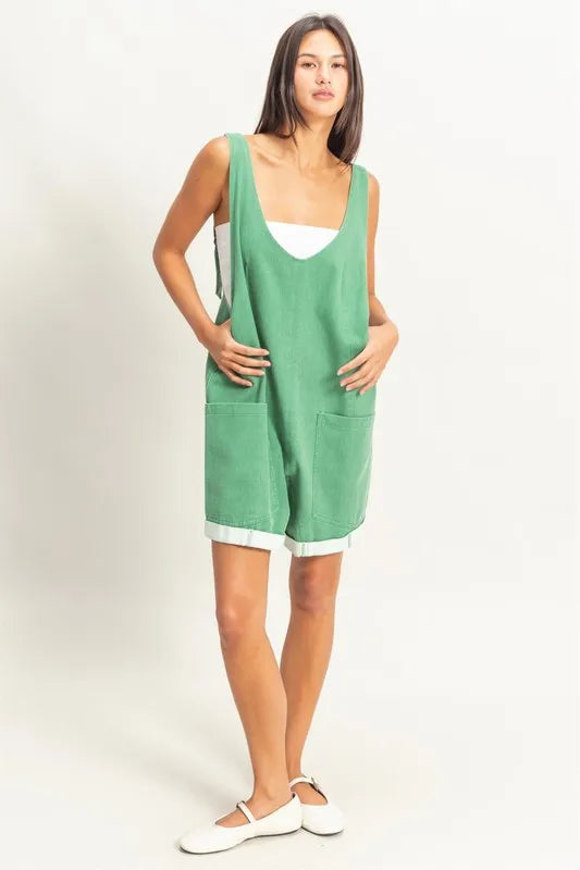 A V-Neck Pocket Detail Romper usually features a stylish V-neck design and includes pockets for added convenience. This type of romper is a one-piece outfit that is versatile and perfect for various occasions, providing a chic and comfortable look. Let me know if you need help finding a specific romper or have any other questions!
