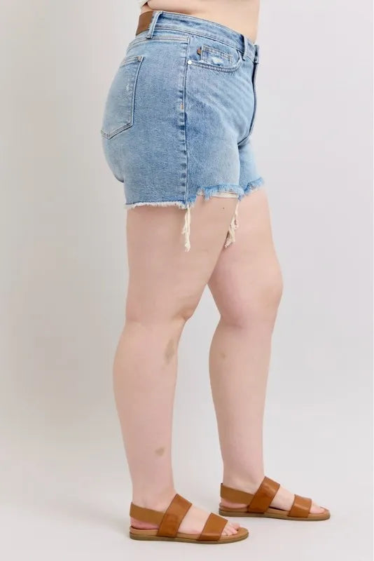 The HW Rigid Magic Destroy Cut Off Denim Shorts are a fashion-forward choice for a stylish and edgy look. Featuring a high-waisted fit and distressed detailing, these shorts offer a cool and trendy vibe. The cut-off hem adds a touch of rawness to the design, making them a statement piece for casual outfits.