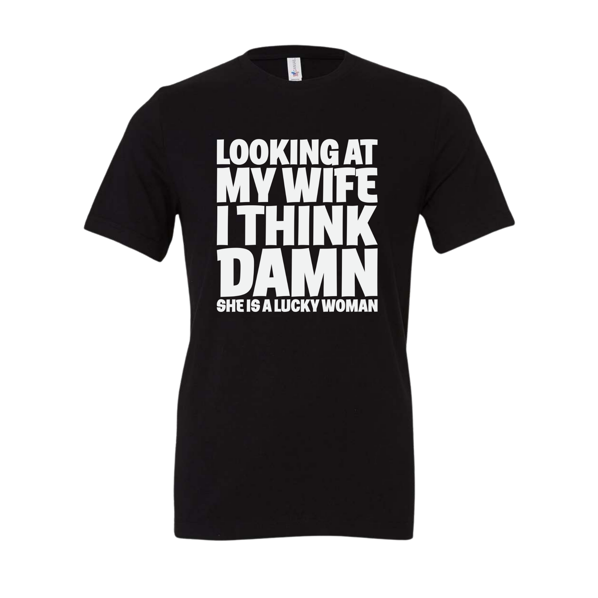 Damn, my wife is a lucky woman. Be sure to wear this black graphic tee as often as you can to remind that lucky lady that she has the privilege to be married to you.
