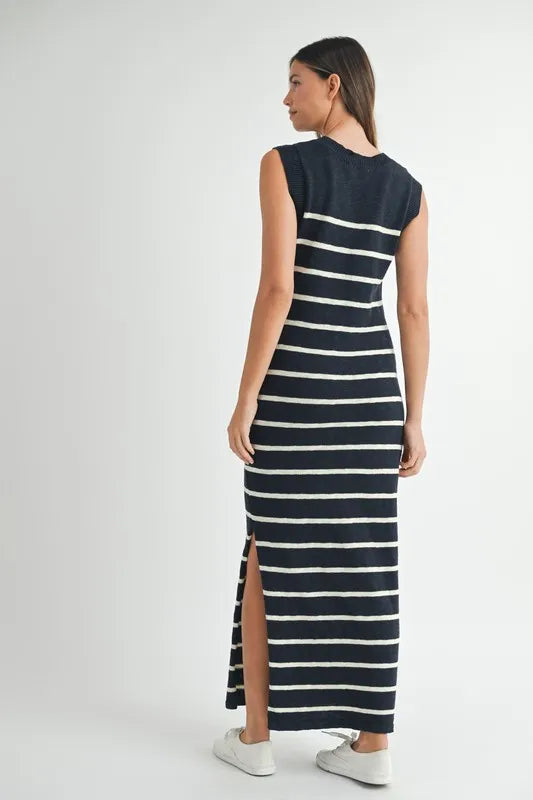 MABLE Sleeveless Stripe Sweater Maxi Side Slit Dress