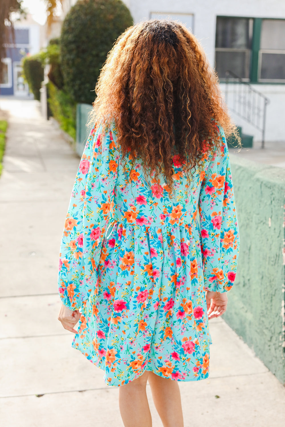With a trendy ribbon bow tie front, this woven babydoll dress with stunning new spring colors features long puff elastic bubble sleeves and side pockets.