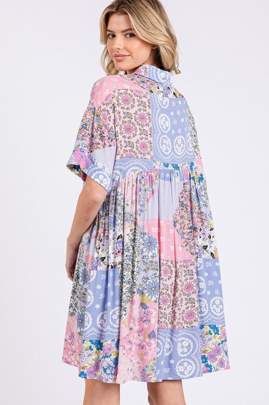 The Floral Collared Neck Half Sleeve Mini Shirt Dress is a charming and feminine piece. The floral print adds a touch of whimsy and elegance to the dress. The collared neckline gives a polished and classic look. With half sleeves and a mini length, this dress is perfect for a stylish and breezy outfit, suitable for various daytime occasions or casual events.