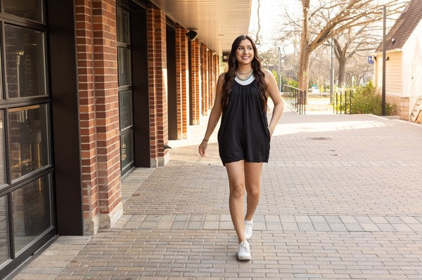 The Krista Romper is all you need for a fun day out! This romper features pockets, making it easy to carry your essentials while staying stylish. With its cute design, you'll feel confident and carefree in this must-have romper!