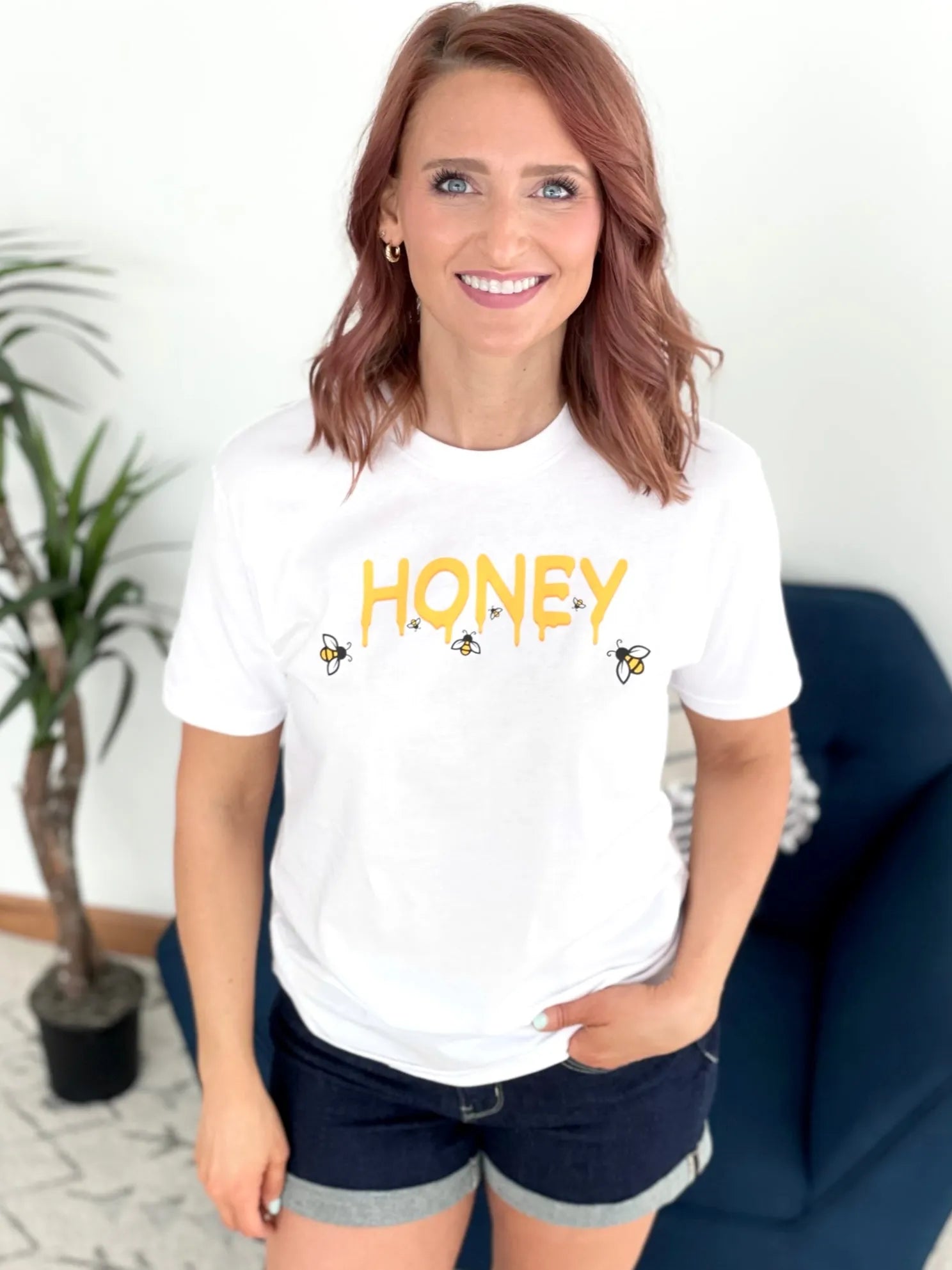 Bees buzzing from flower to flower means spring has officially arrived! Wear this cute honey bee tee with Judy Blue shorts for a comfortable look all season.