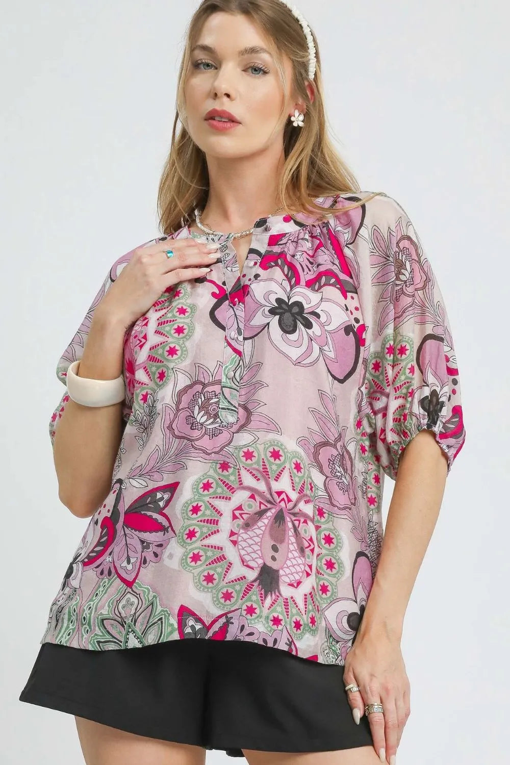 Umgee Floral Print Half Sleeve Blouse