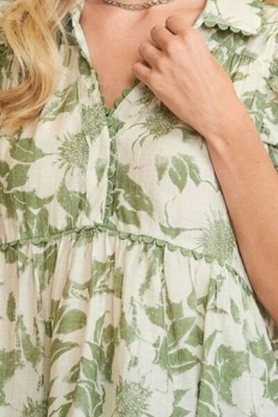 This botanical print baby doll top features a relaxed and flowy silhouette for a comfortable and stylish look. The botanical print adds a touch of nature-inspired charm to the top. Perfect for a casual and laid-back vibe, this baby doll top is a versatile and trendy addition to your wardrobe.