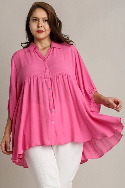 This shirt features a high-low hemline, with the back being longer than the front, creating a chic and dynamic silhouette. The tiered design adds interesting texture and flow to the garment, giving it a feminine and playful look. The button-down style offers classic versatility and allows for easy layering and styling options. This shirt is perfect for adding a touch of sophistication to your casual or dressy outfits, making it a must-have piece in your wardrobe.
