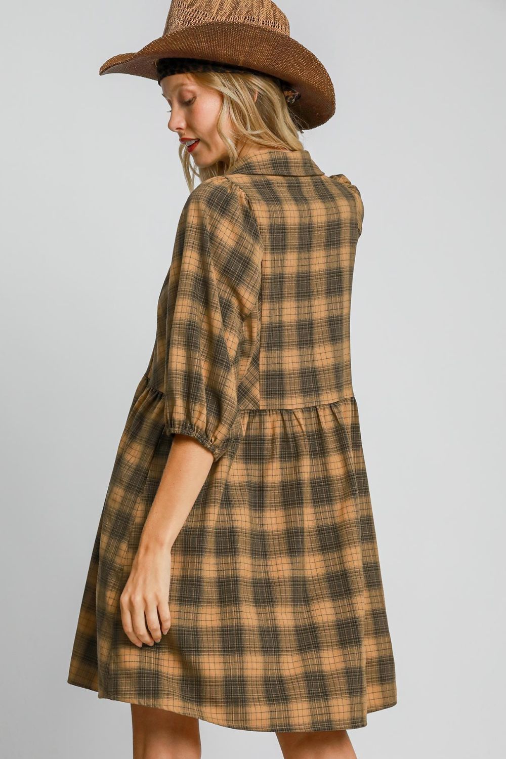 The Plaid Button Front Collared Neck Mini Shirt Dress is a fashionable and versatile piece that combines classic plaid pattern with a modern shirt dress silhouette. The collared neck adds a polished and sophisticated touch to the dress. Featuring a button front design, this dress offers both style and functionality. The mini length adds a chic and trendy vibe, making it perfect for a variety of occasions. Stand out in style with this on-trend plaid shirt dress.
