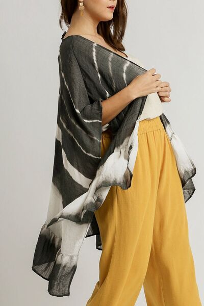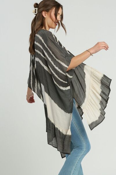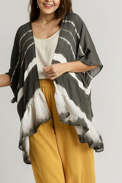 Umgee Full Size Tie Dye Back String Tie Open Front Kimono Sleeve Cover Up Plus Size