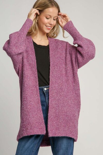 This cardigan is made from a wool blend, offering warmth and softness for the cooler seasons. The open front design makes it easy to layer over different outfits. The lantern sleeves are voluminous and trendy, adding a fashion-forward statement to the cardigan. With its blend of wool, this cardigan provides both insulation and comfort, ideal for staying cozy while looking chic. This Wool Blend Open Front Lantern Sleeve Cardigan is a versatile and fashionable piece to add to your wardrobe for a stylish winter look.