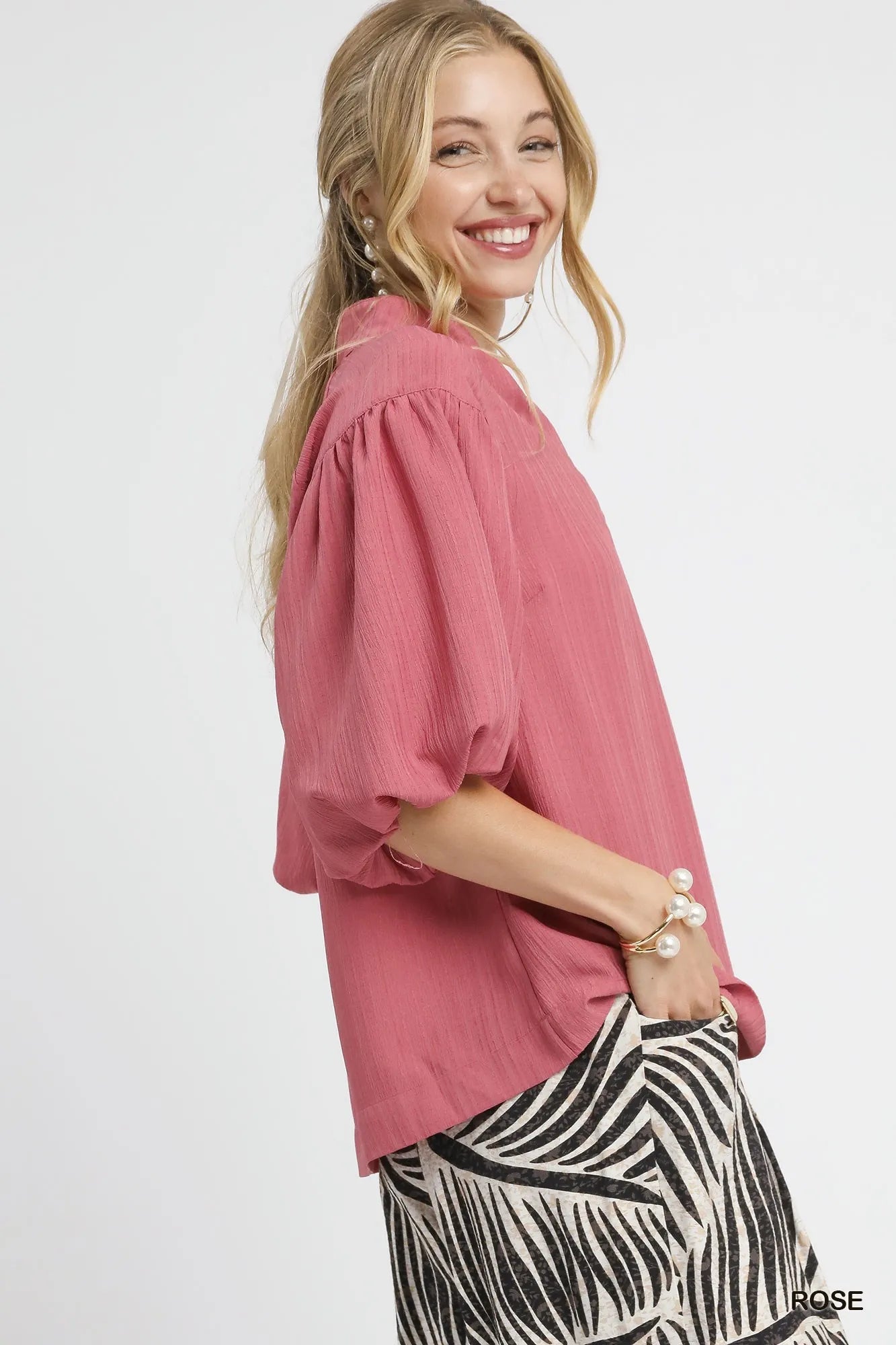 Elevate your wardrobe with this Textured Puff Sleeve Blouse. The textured fabric adds dimension and interest to this classic silhouette. The puff sleeves create a fashion-forward look that is both elegant and statement-making. Perfect for dressing up any outfit with a touch of sophistication.