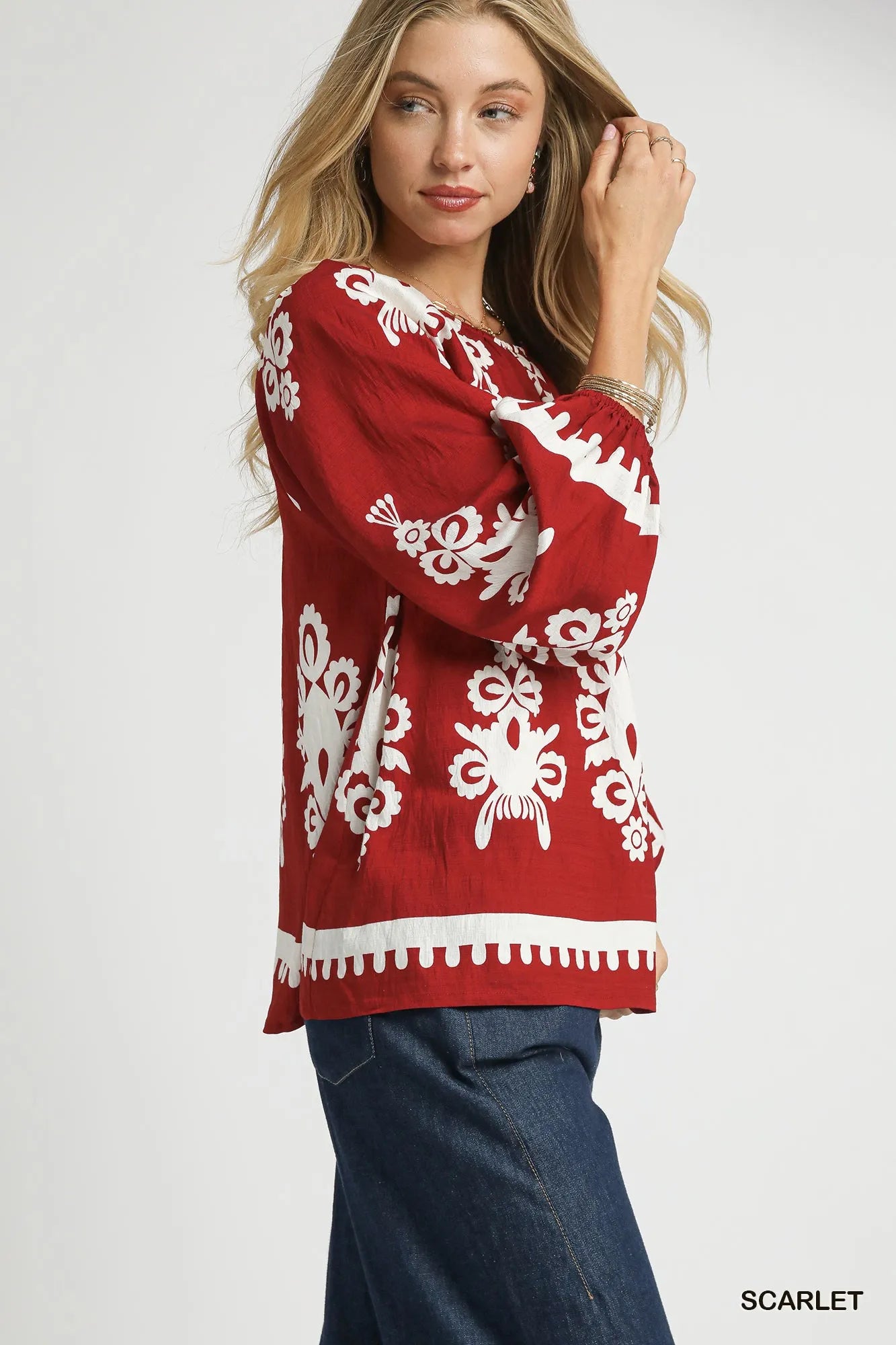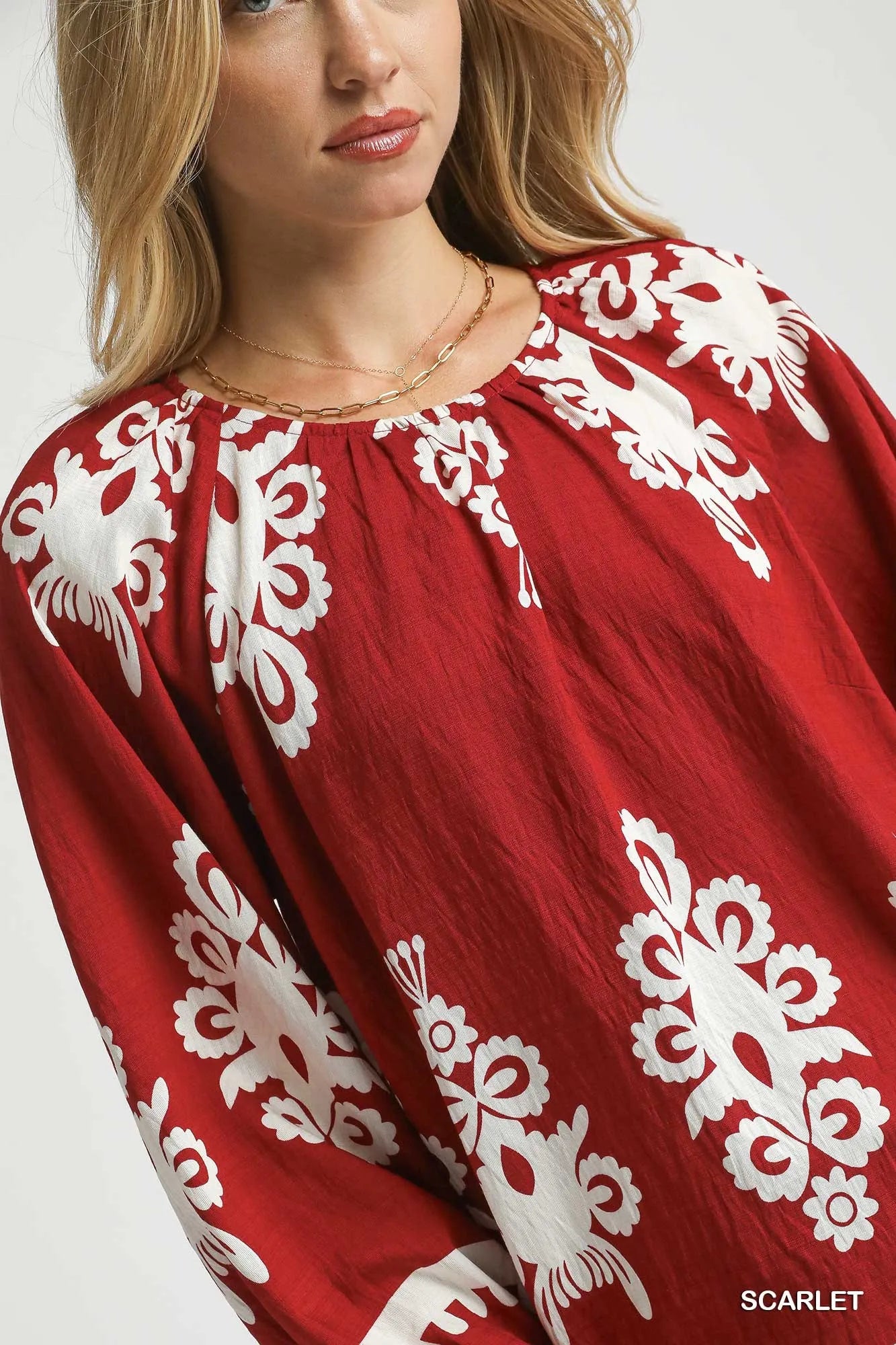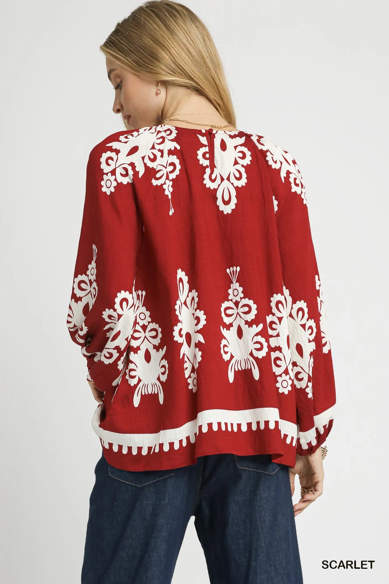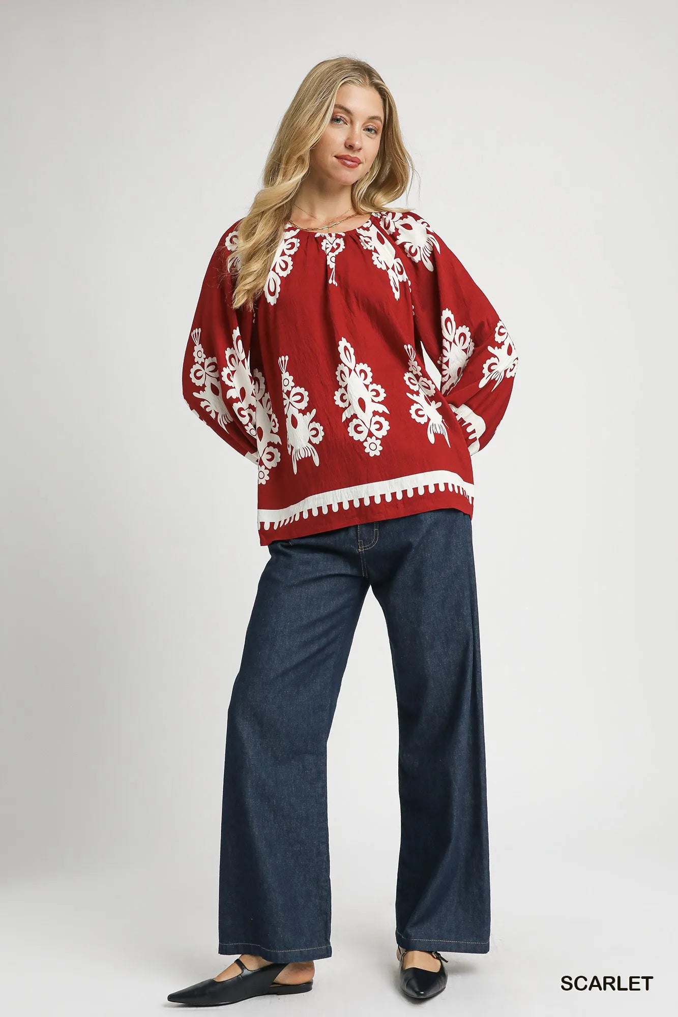The Two Tone Border Print Top with Balloon Sleeves is a fashionable and trendy piece that combines a stylish border print with whimsical balloon sleeves. This top adds a touch of flair and personality to your wardrobe. The two-tone design offers a modern and chic look that is perfect for any occasion. Embrace the unique silhouette and playful detailing of this top for a standout and fashionable ensemble.