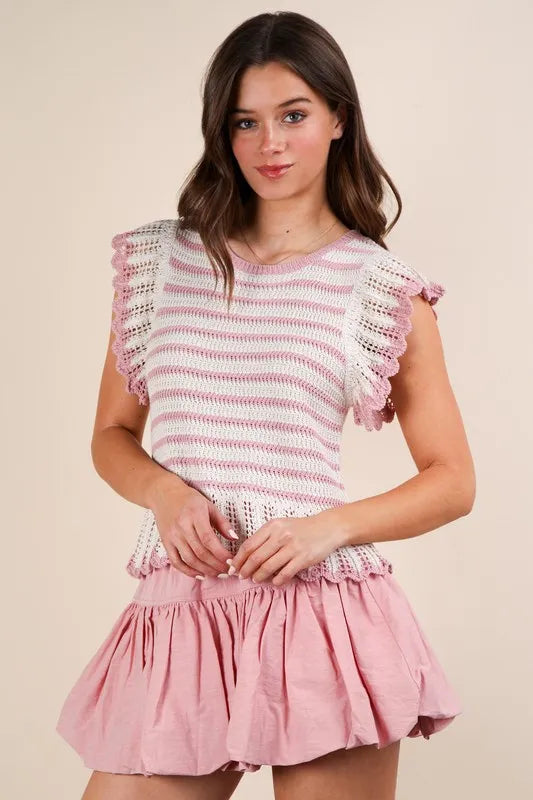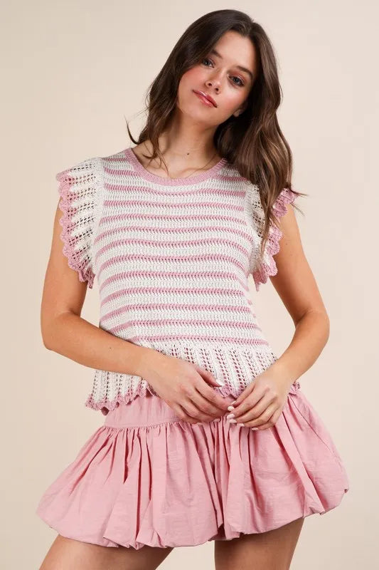 VERY J Ruffle Detail Striped Knit Sweater Top