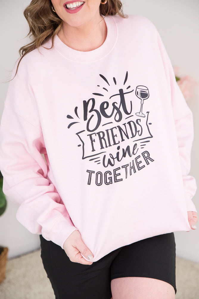 There's nothing like enjoying a glass of wine with your best friend. This pink graphic crewneck is perfect for a relaxing evening with your bestie while lounging out home together.