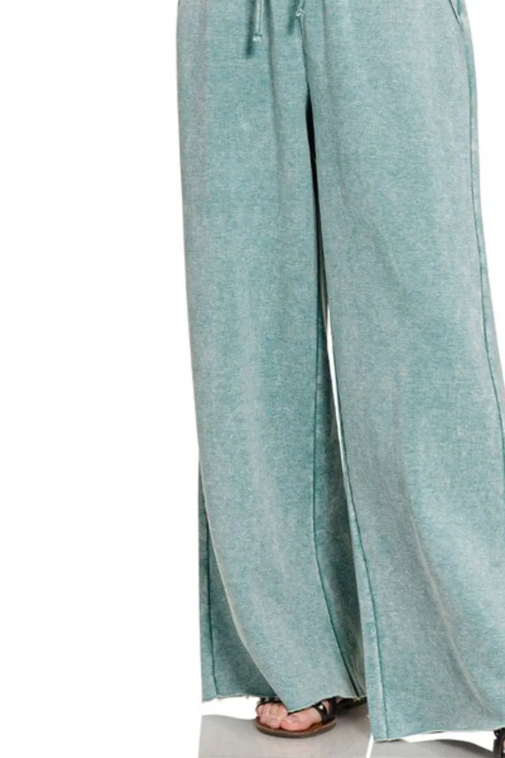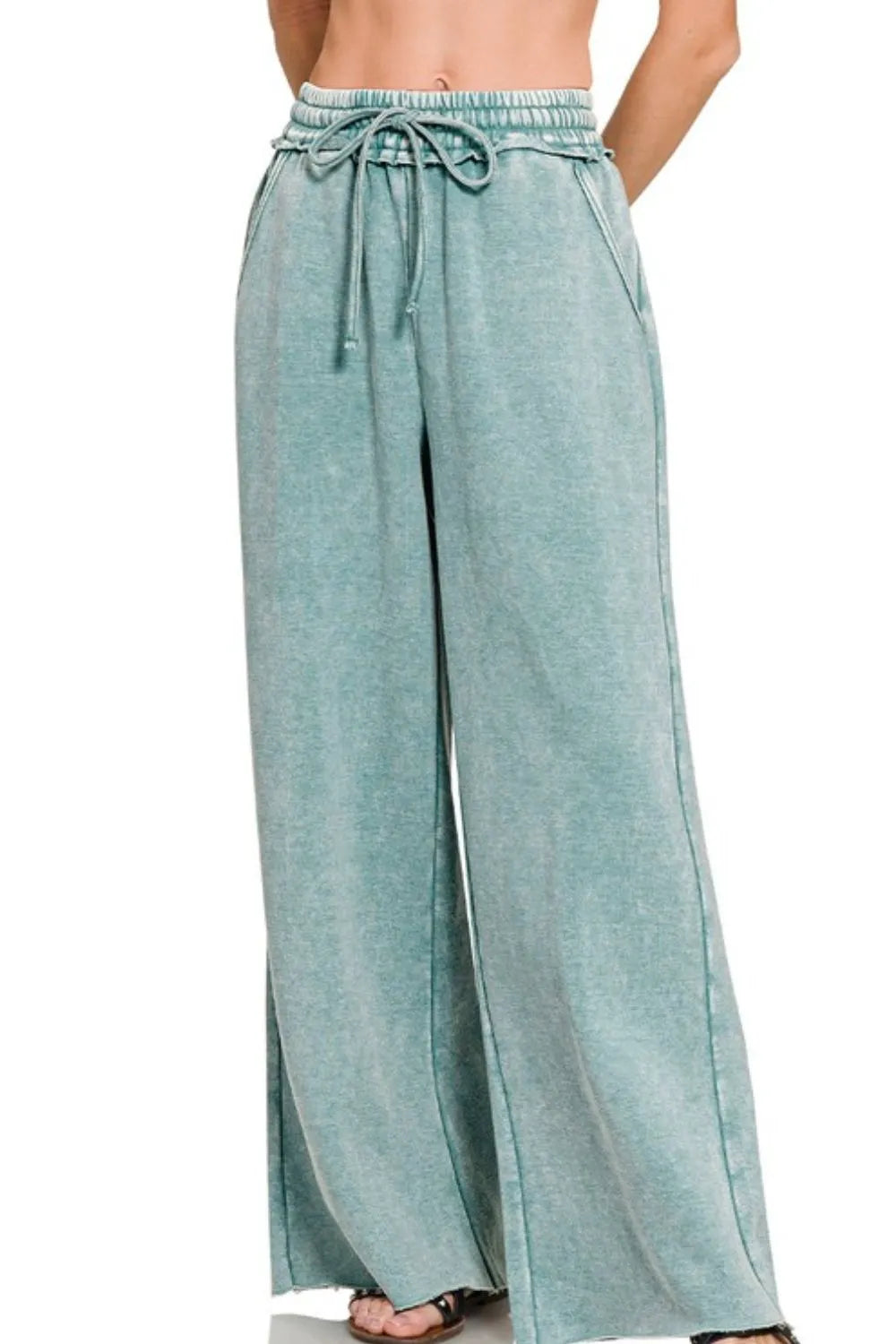 Zenana Acid Wash Fleece Palazzo Sweatpants with Pockets